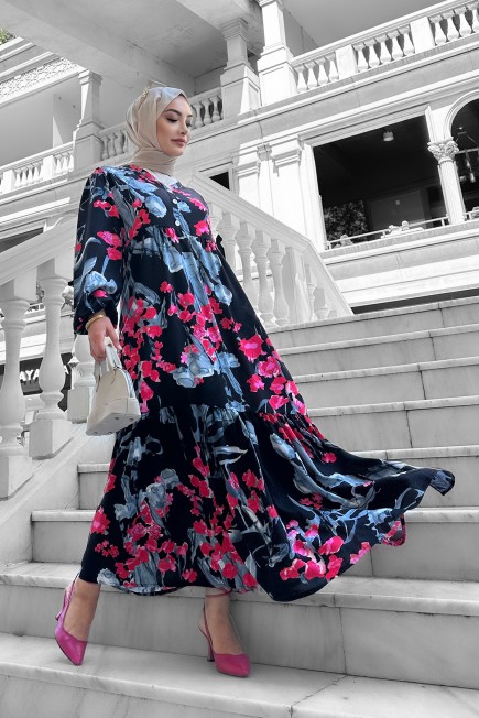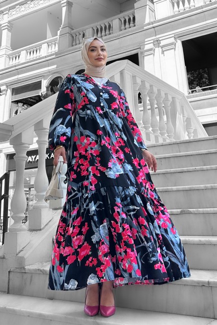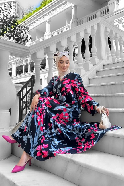 Beymen Desenli Viskon Elbise Fuşya - 264042