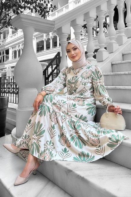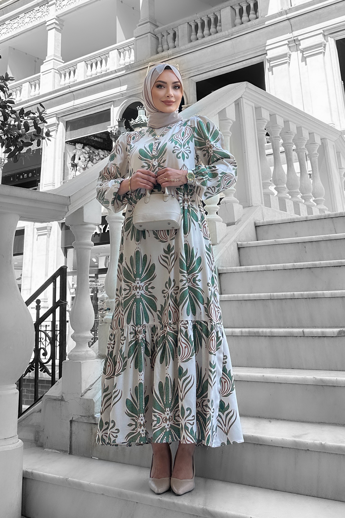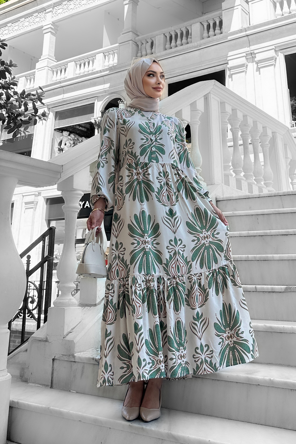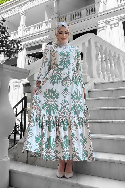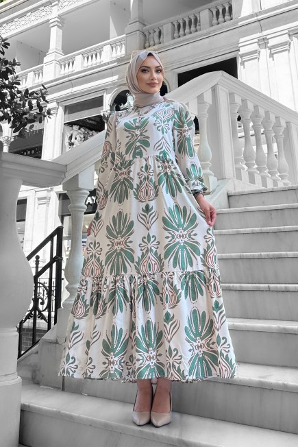 Bohem Desenli Viskon Elbise Fistik Yeşi̇li̇ - 264045