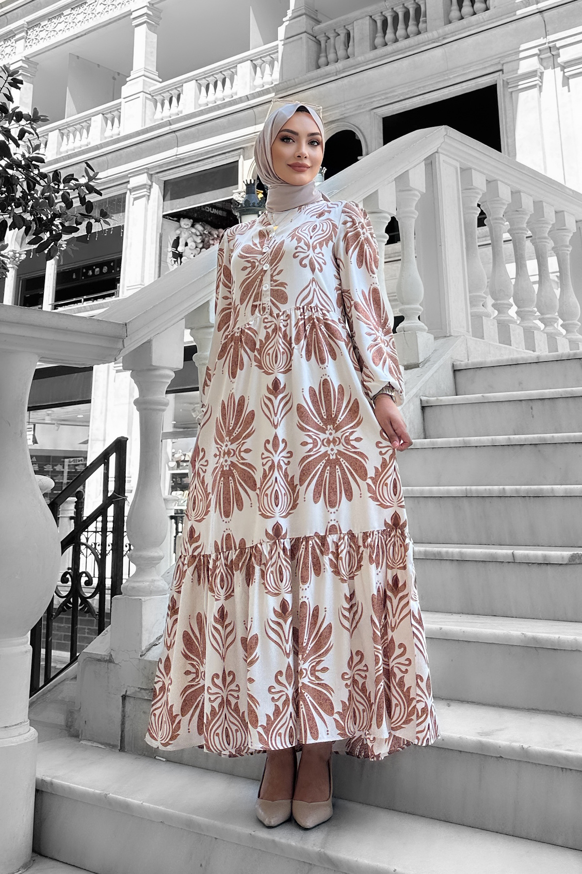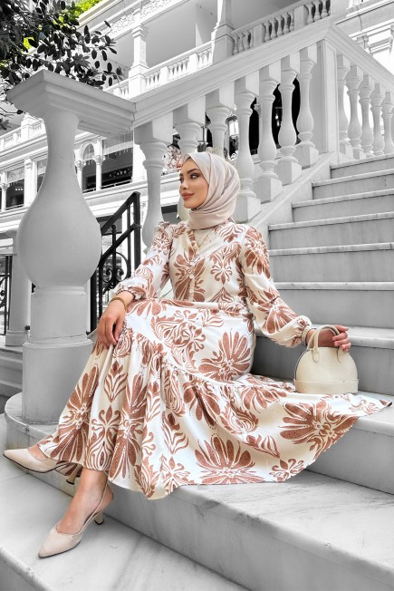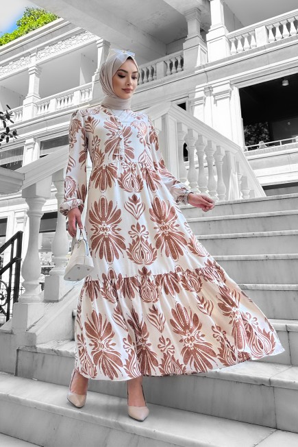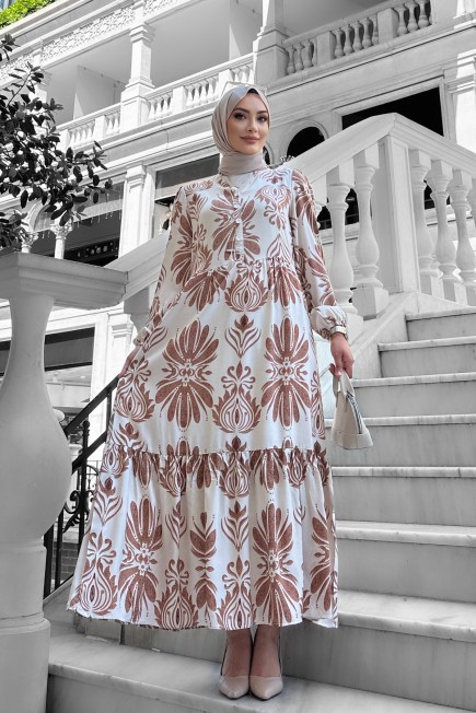 Bohem Desenli Viskon Elbise Kahverengi - 264047