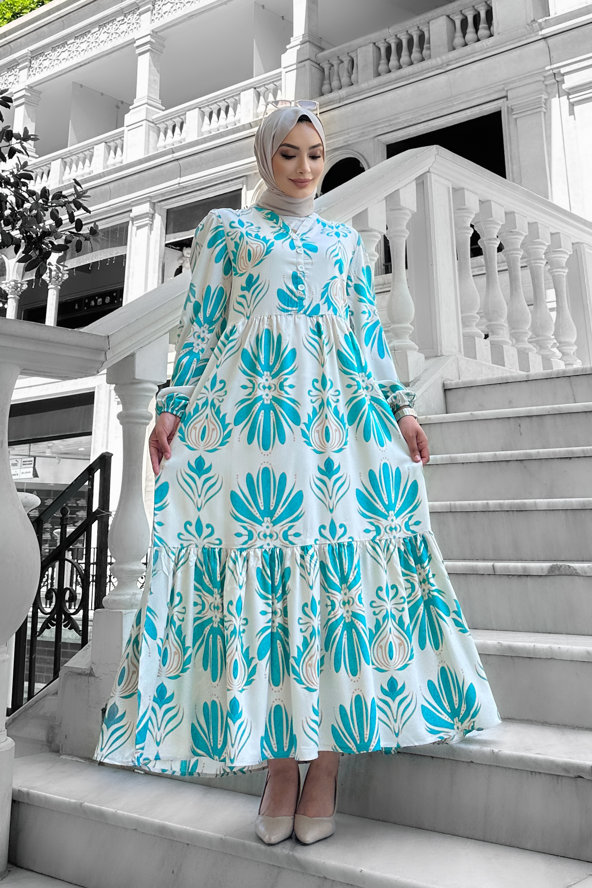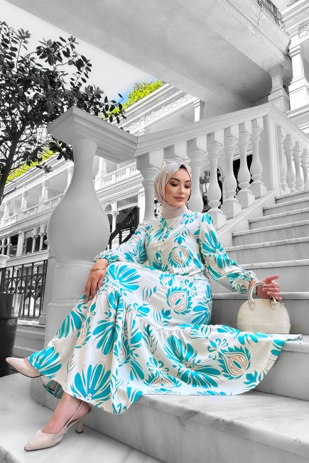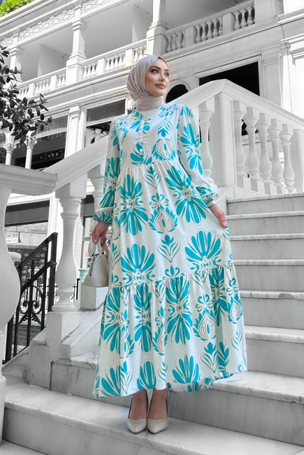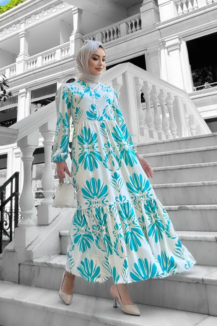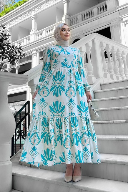 Bohem Desenli Viskon Elbise Turkuaz - 264049