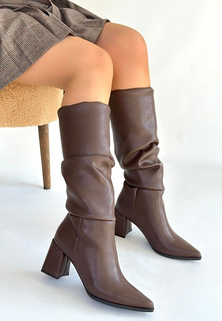 Canty Taba Süet Körüklü Topuklu Çizme - 265930