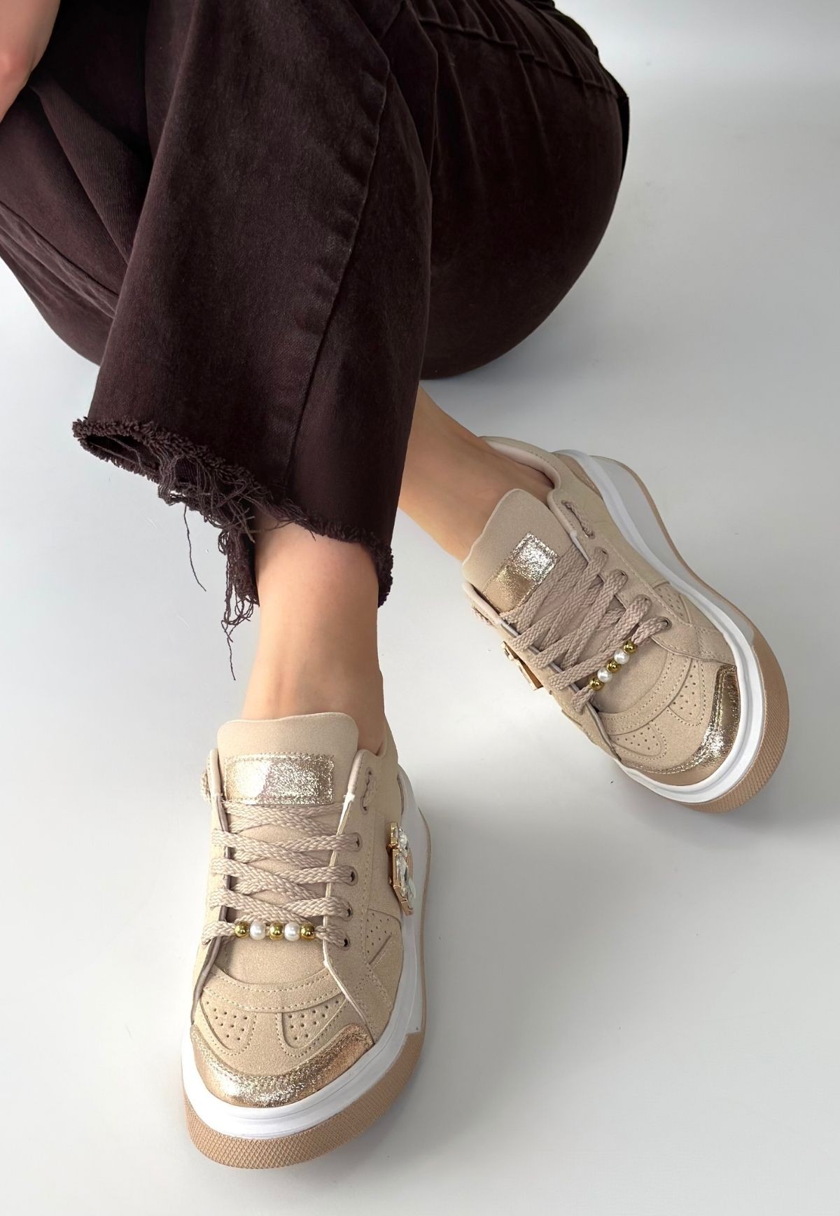 Ceans Bej Süet Bağcıklı Spor Ayakkabı - 267303