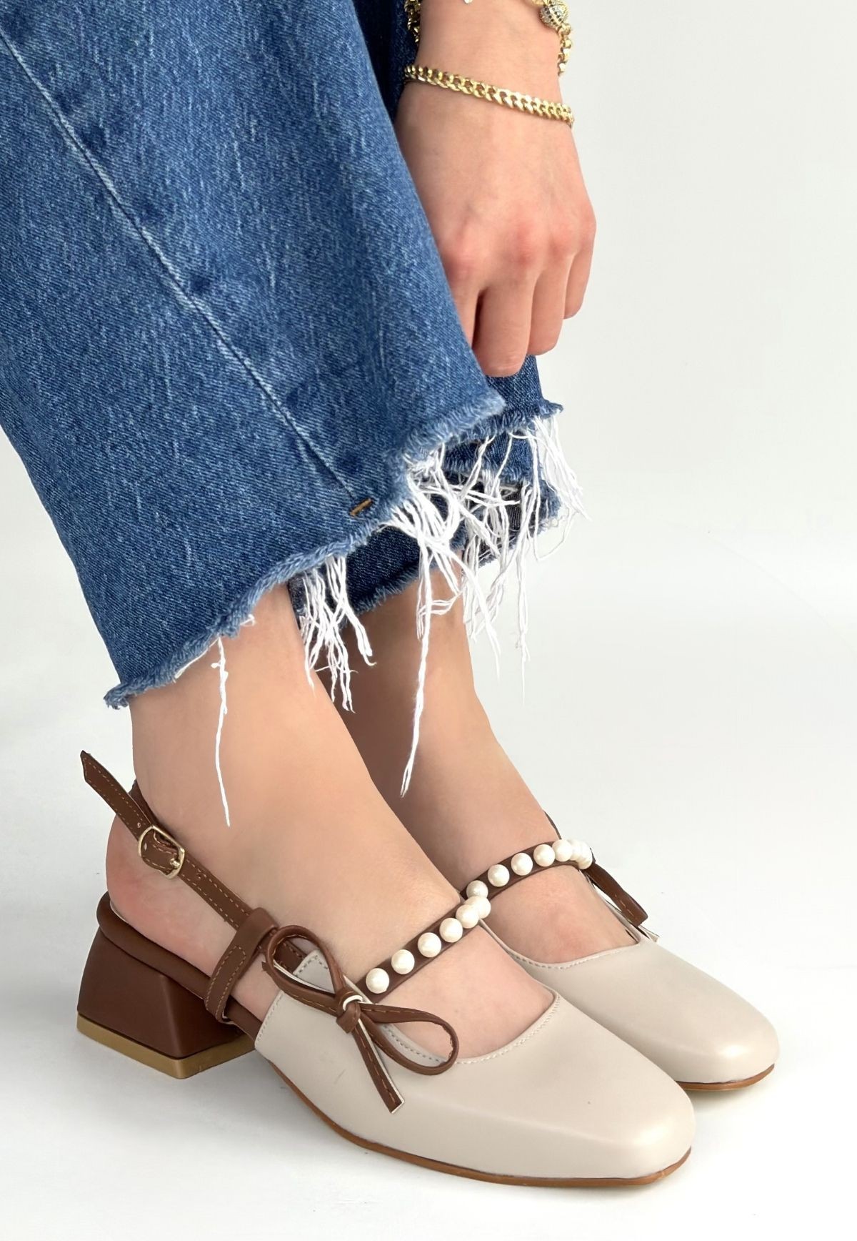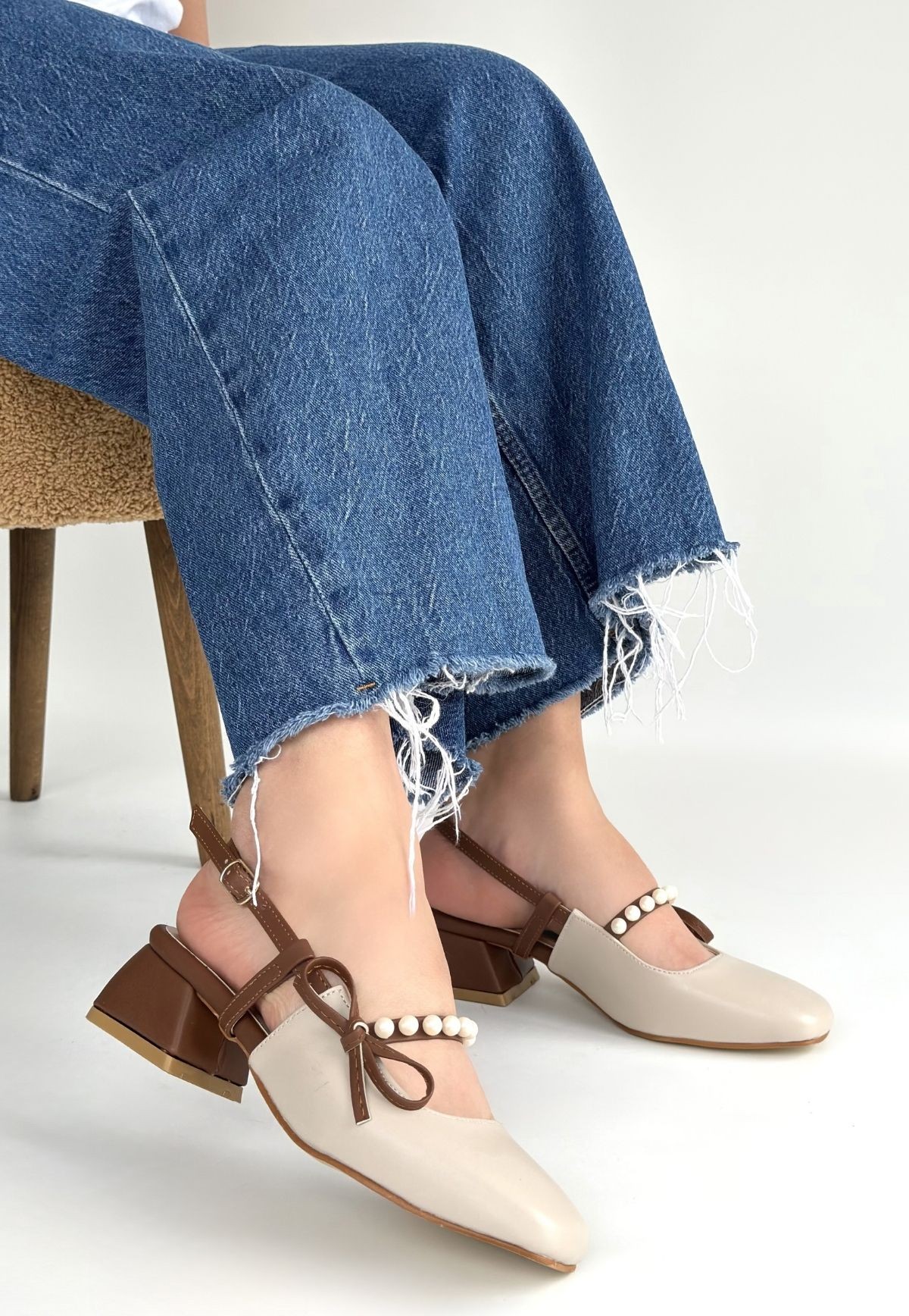 Ceyda Bej Cilt Taba Detaylı Topuklu Ayakkabı - 268398