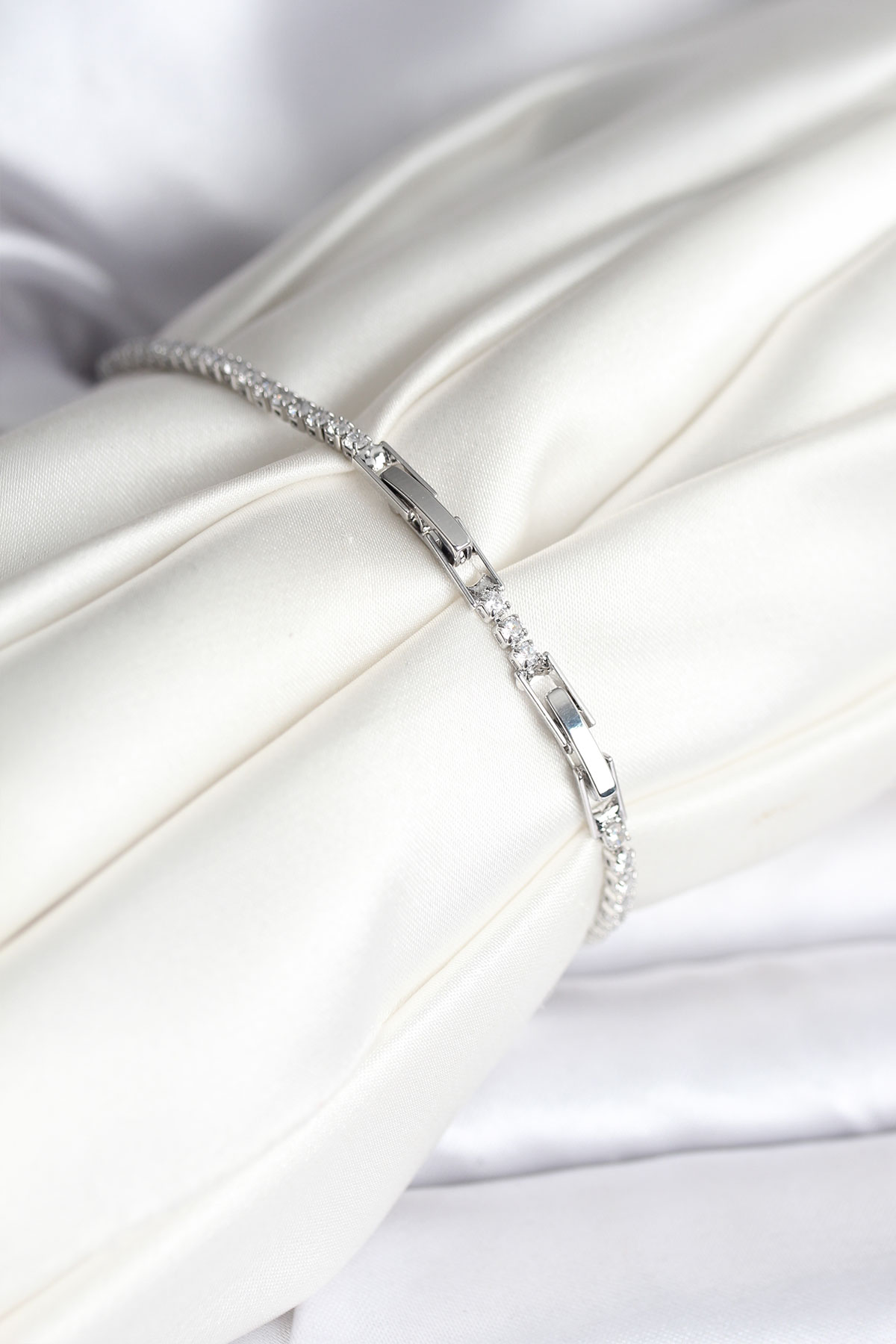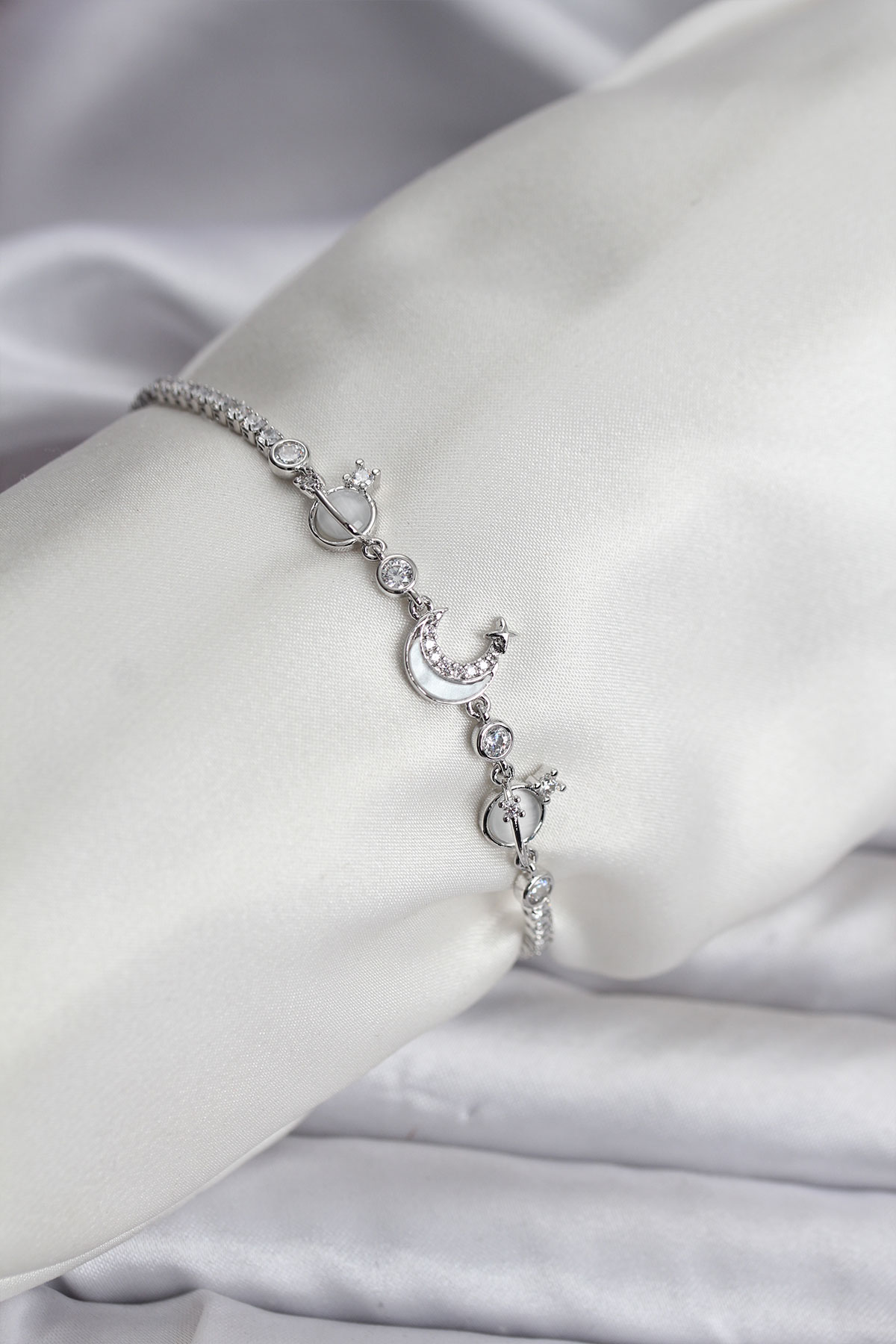 Charmlı Model Zirkon Taşlı Gümüş Renk Su Yolu Kadın Bileklik - 266479