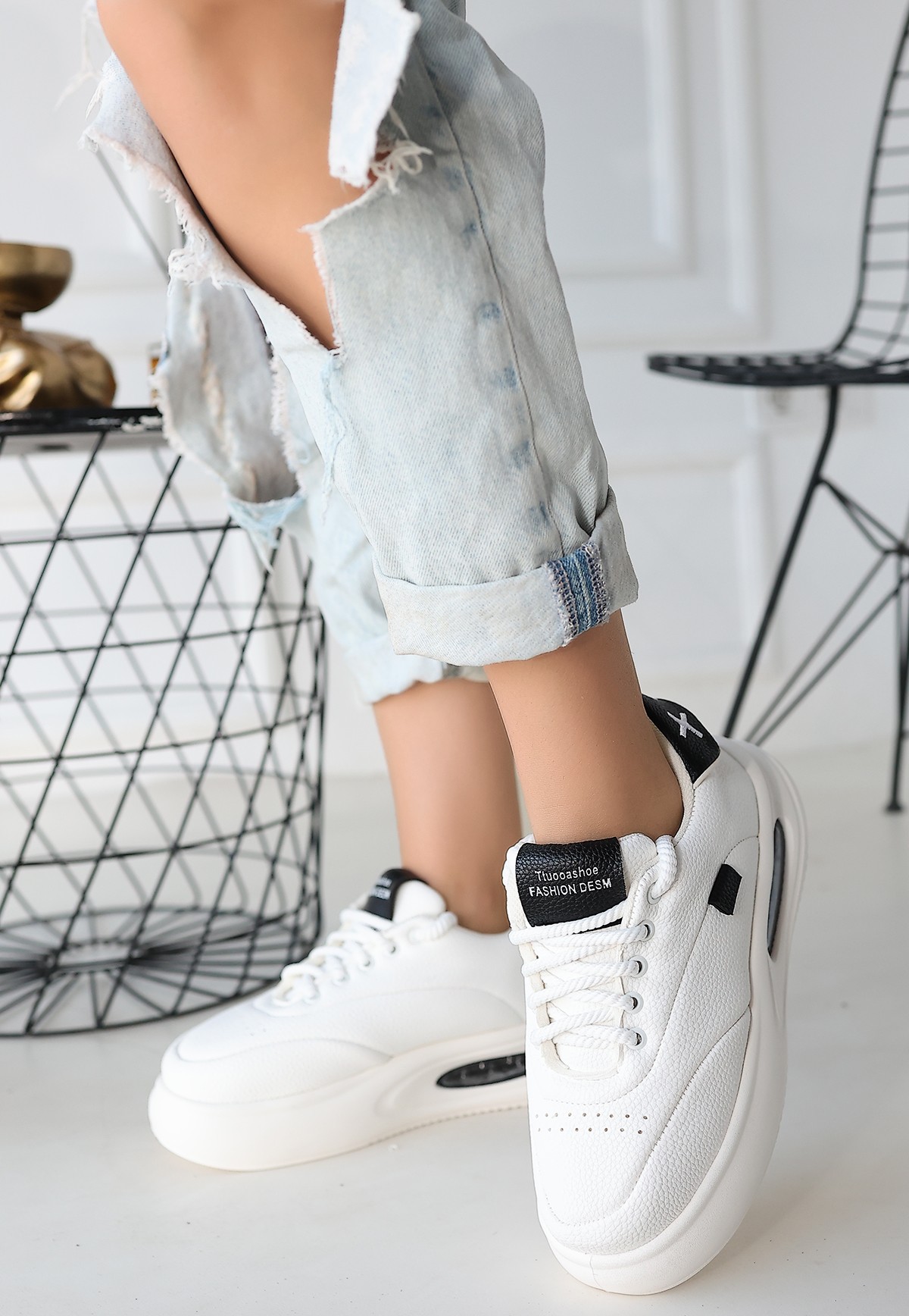 Chris Beyaz Cilt Siyah Detaylı Bağcıklı Spor Ayakkabı - 257232