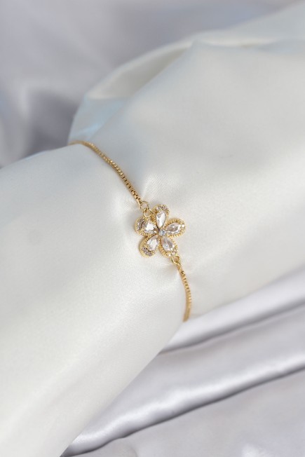 Çiçek Model Asansörlü Gold Renk Kadın Bileklik - 266015