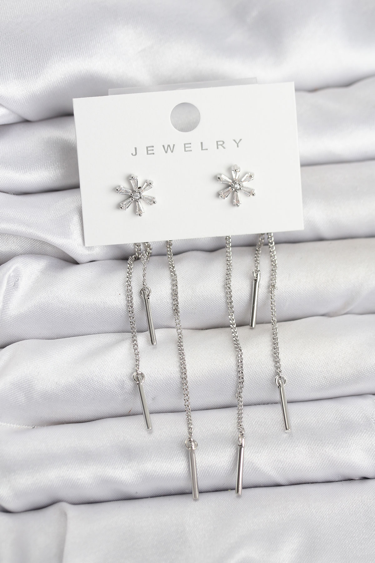 Çiçek Model Gümüş Pirinç Sallantılı Kadın Küpe - 266604