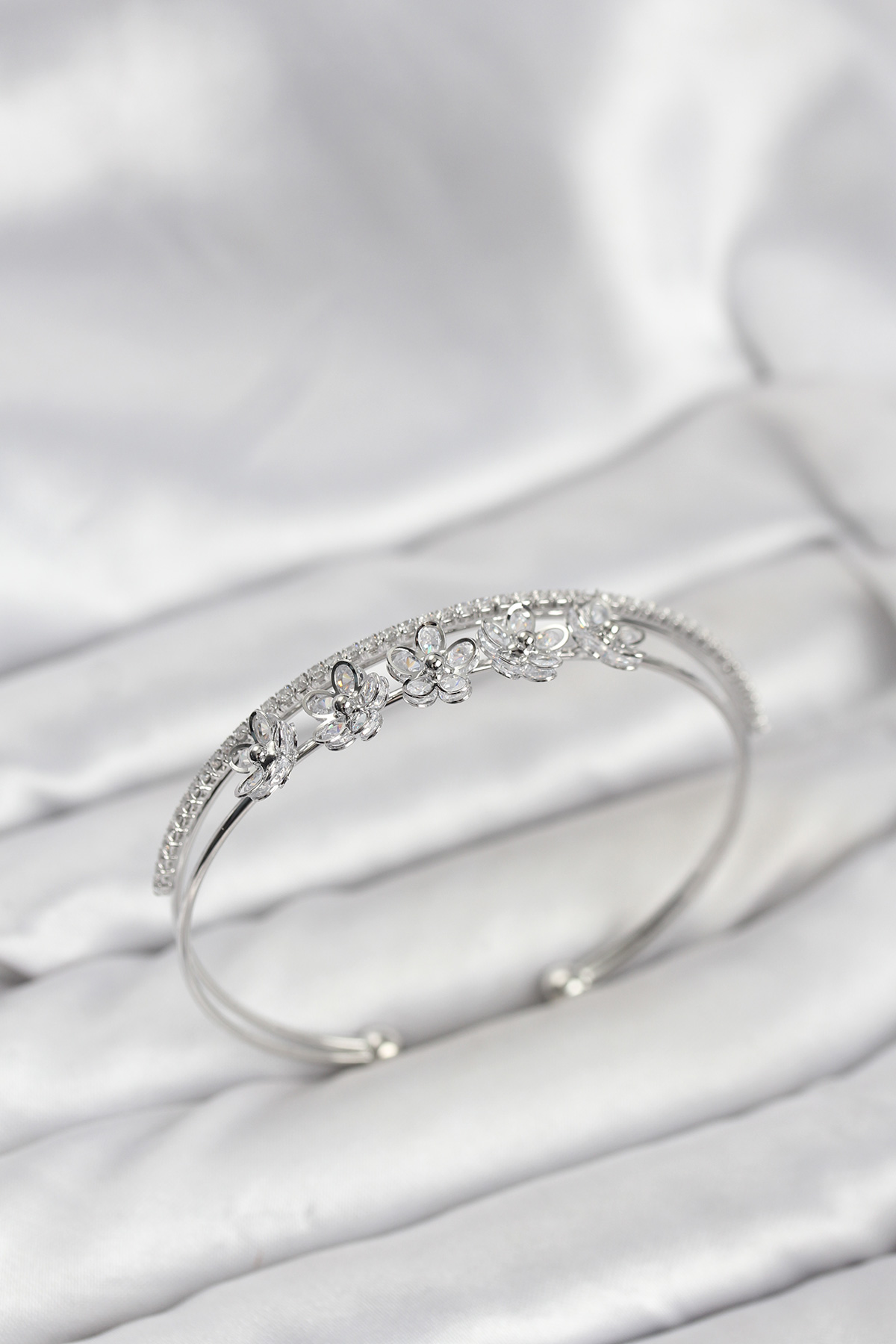 Çiçek Model Pirinç Gümüş Renk Kadın Bileklik - 267061