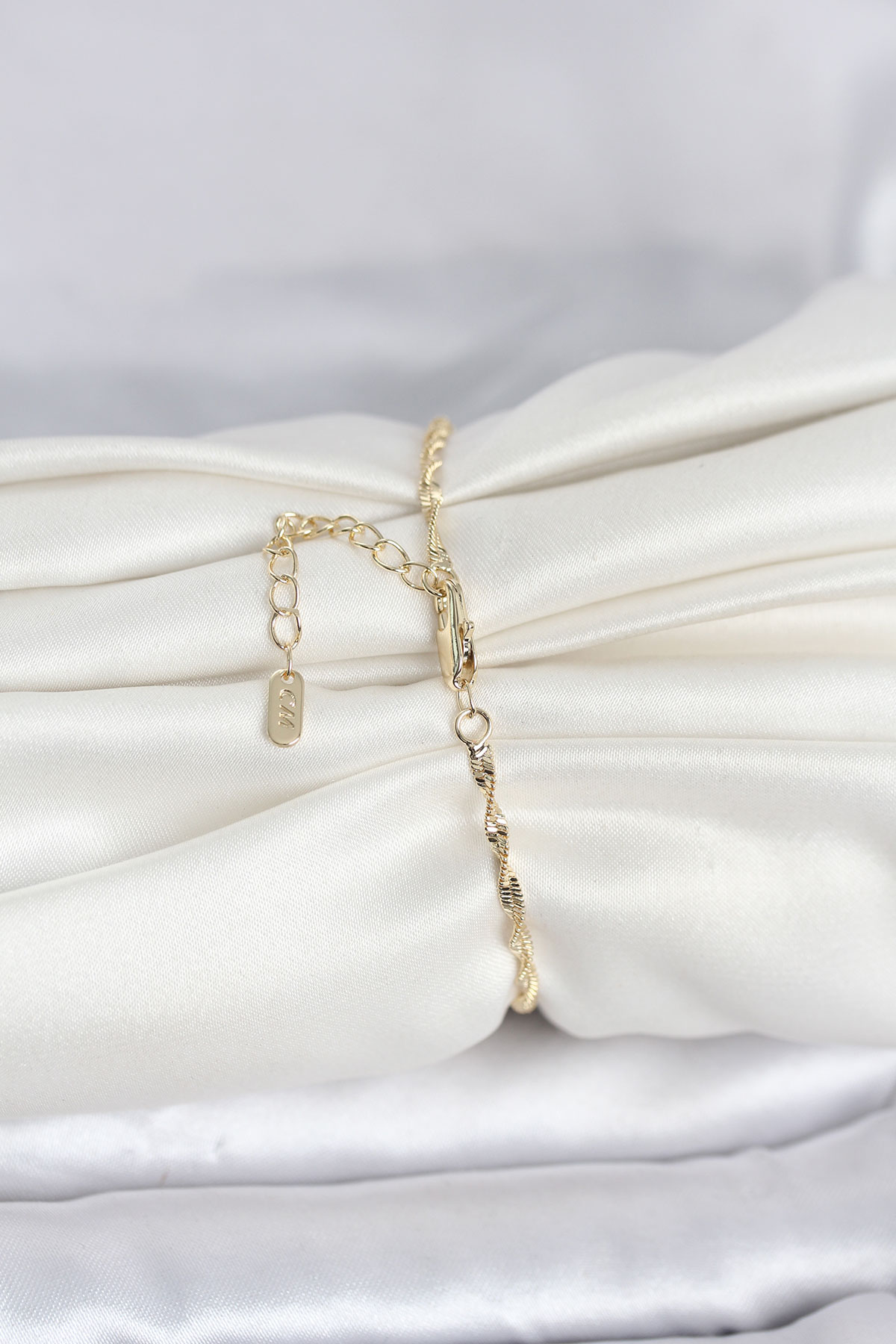 CM 14K Gold Renk Yassı Ezme Burgu Model Kadın Bileklik - 267414