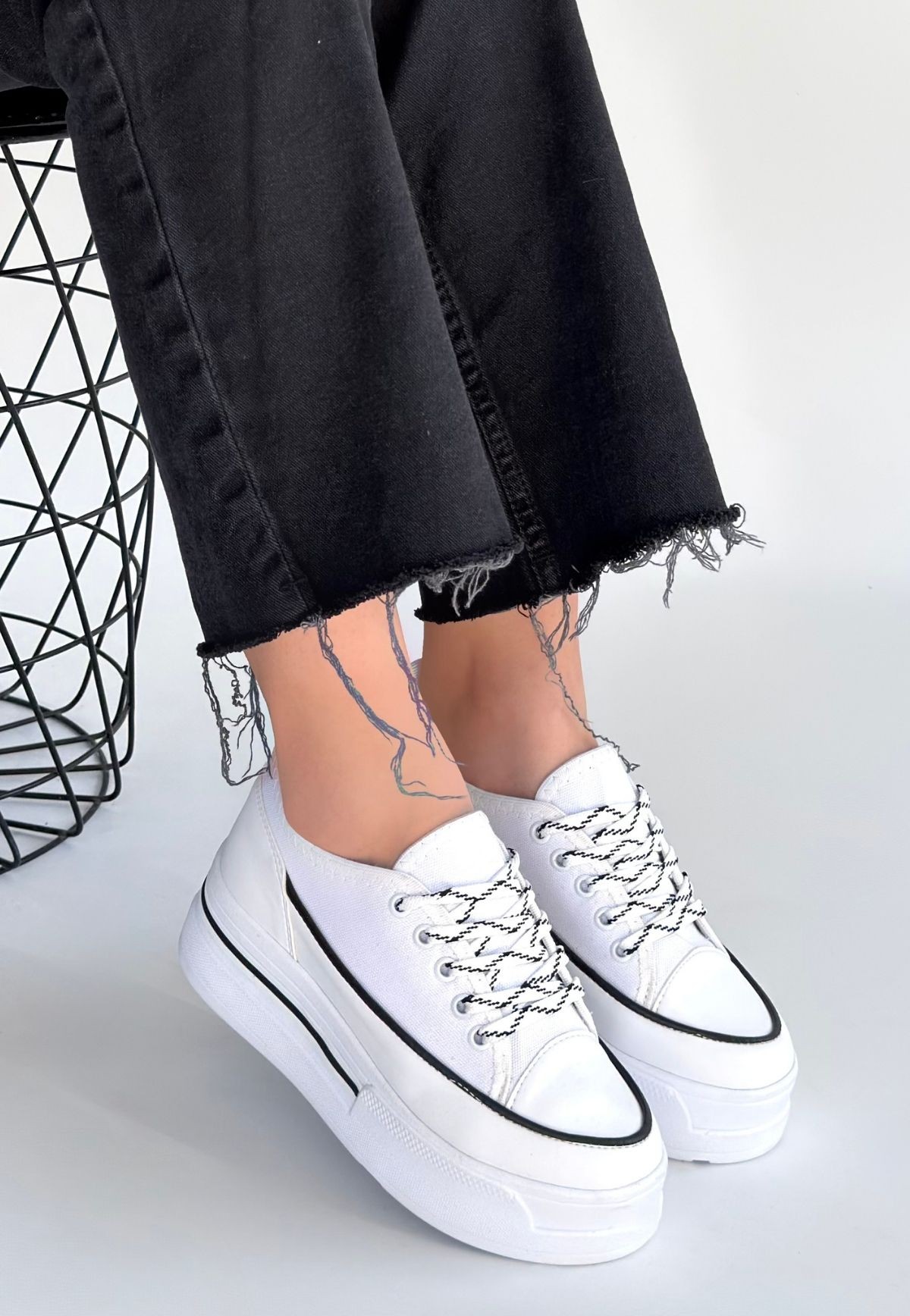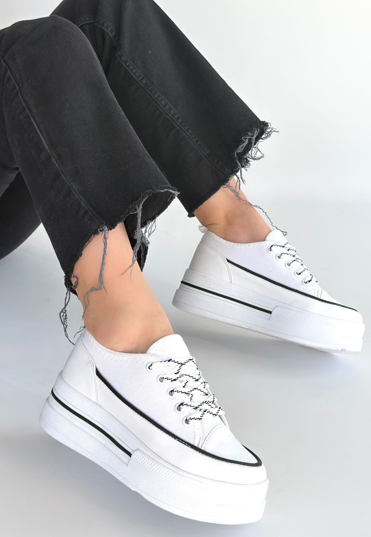 Dalen Beyaz Keten Bağcıklı Spor Ayakkabı - 267309