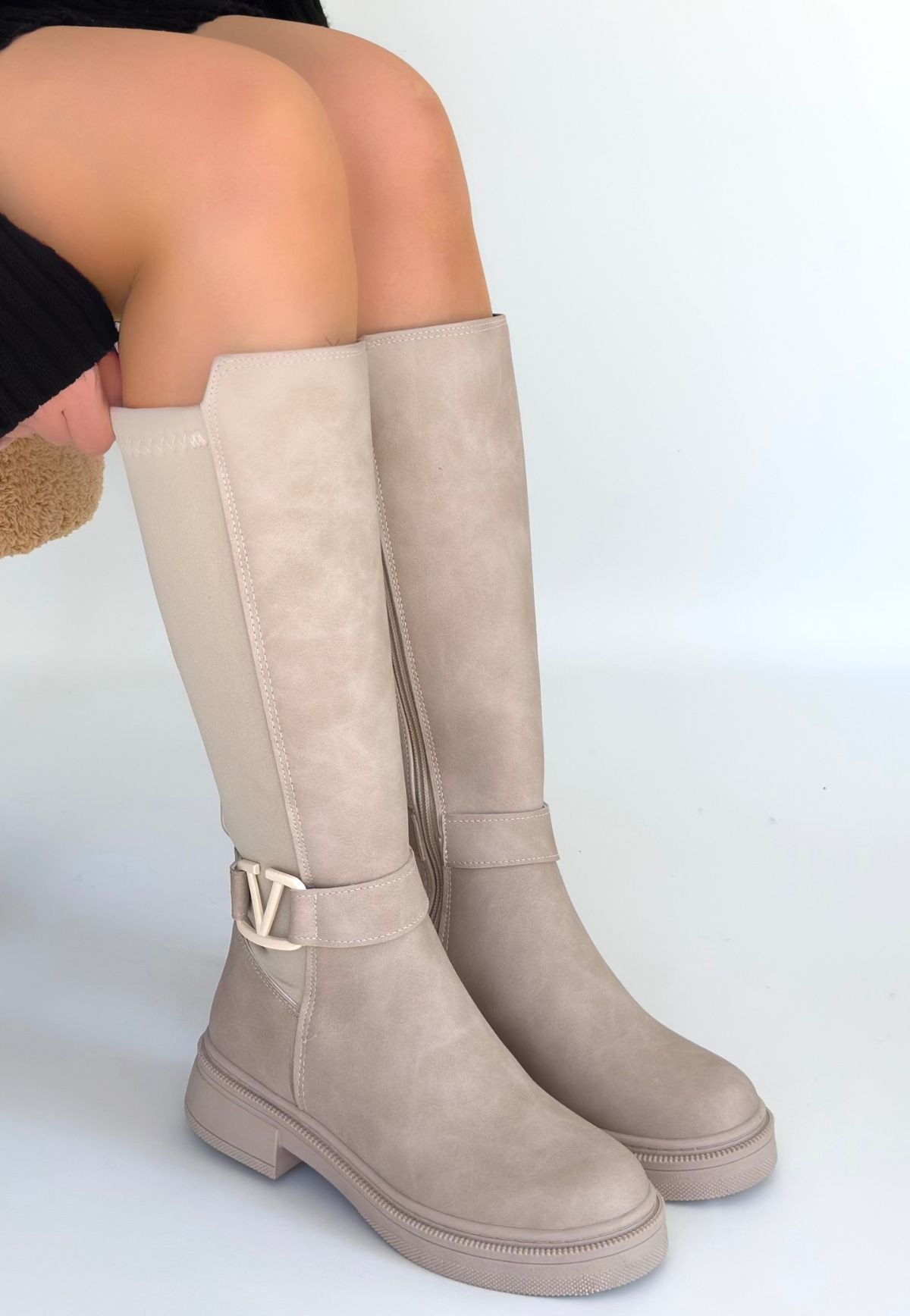 Detay: Topuklu Yandan Fermuarlı Diz Altı Çizme