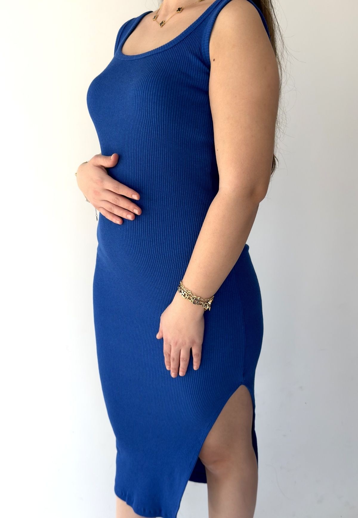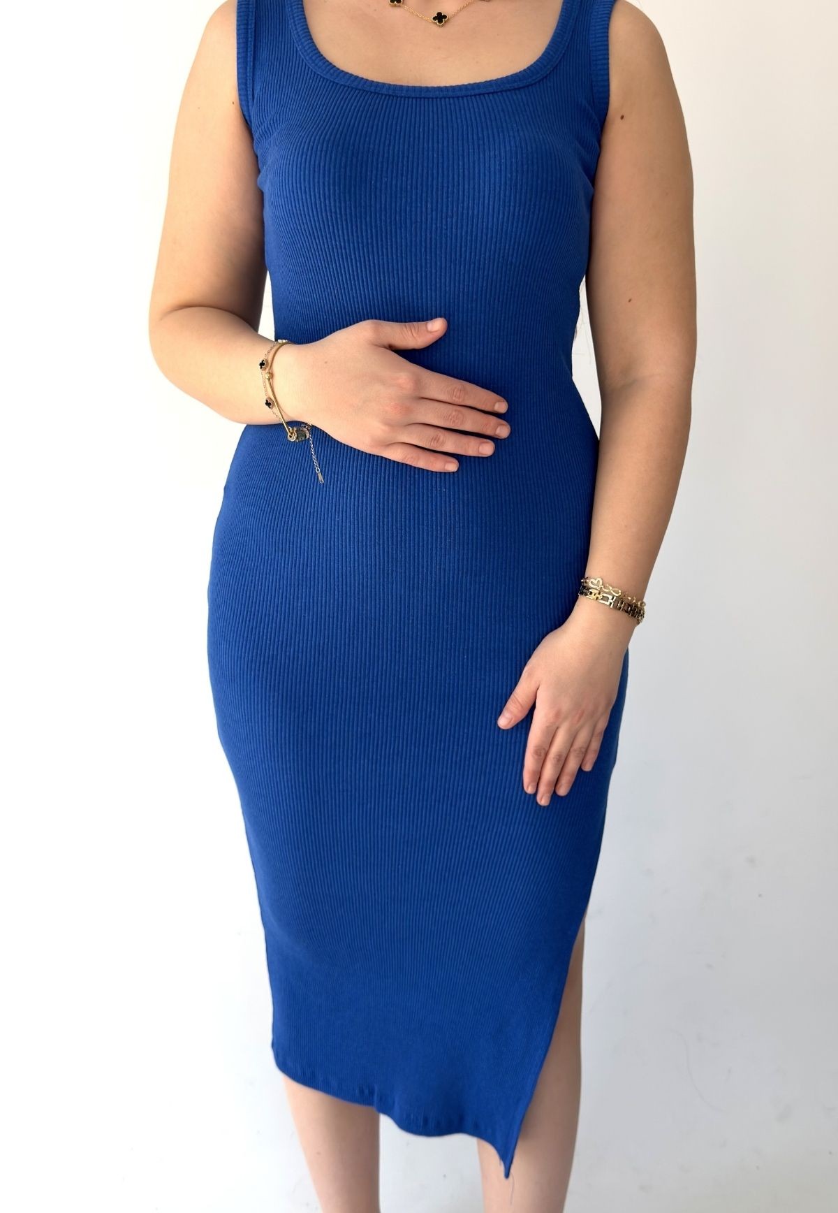 Diore Mavi Yırtmaçlı Elbise - 267922