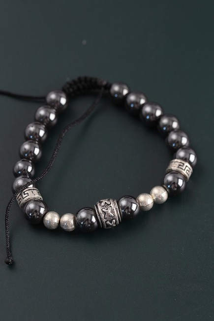 Doğal Taş X Model Antrasit Renk Asansörlü Erkek Bileklik - 265478