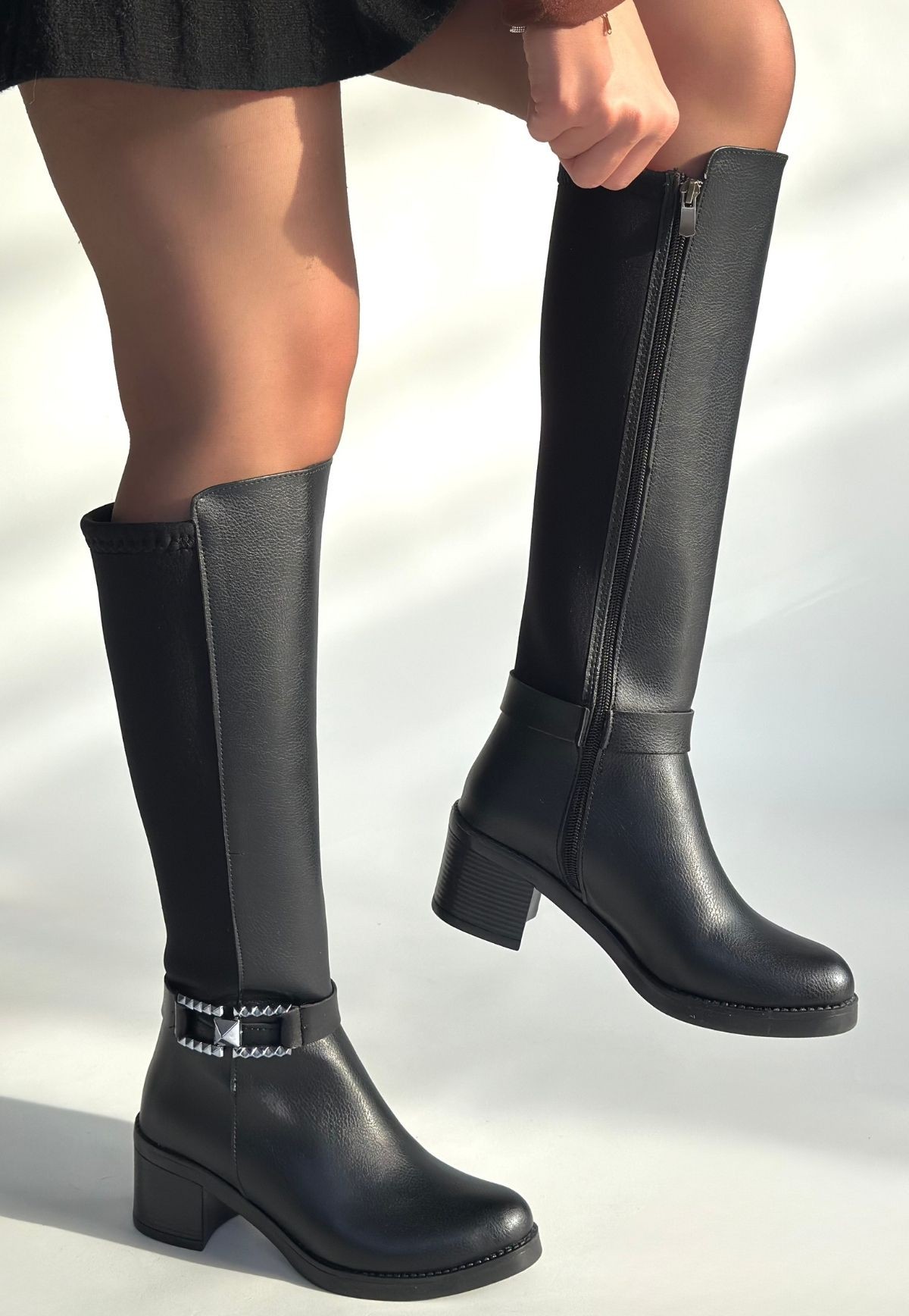 Emrat Siyah Cilt Topuklu Çizme - 251177