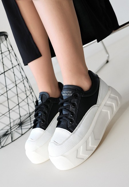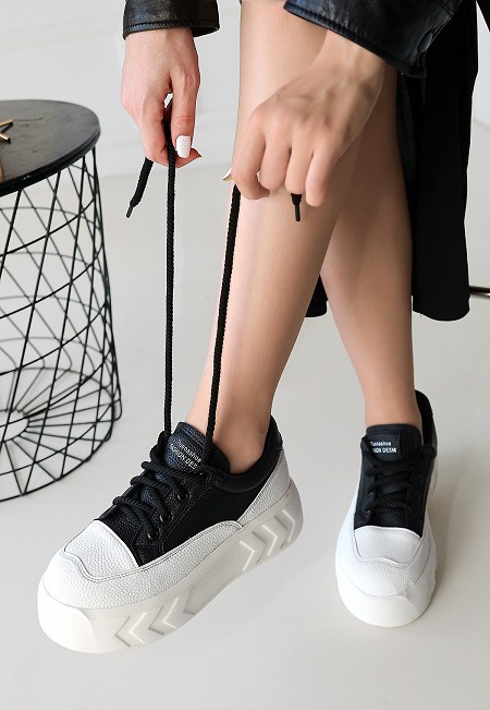 Emwa Siyah Cilt Bağcıklı Spor Ayakkabı - 257236