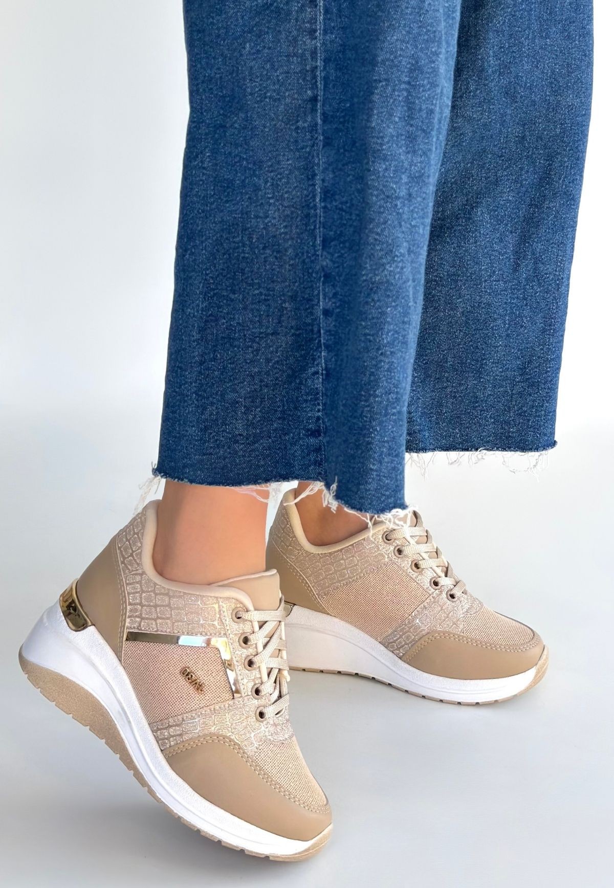 Geja Bej Cilt Bağcıklı Spor Ayakkabı - 267286