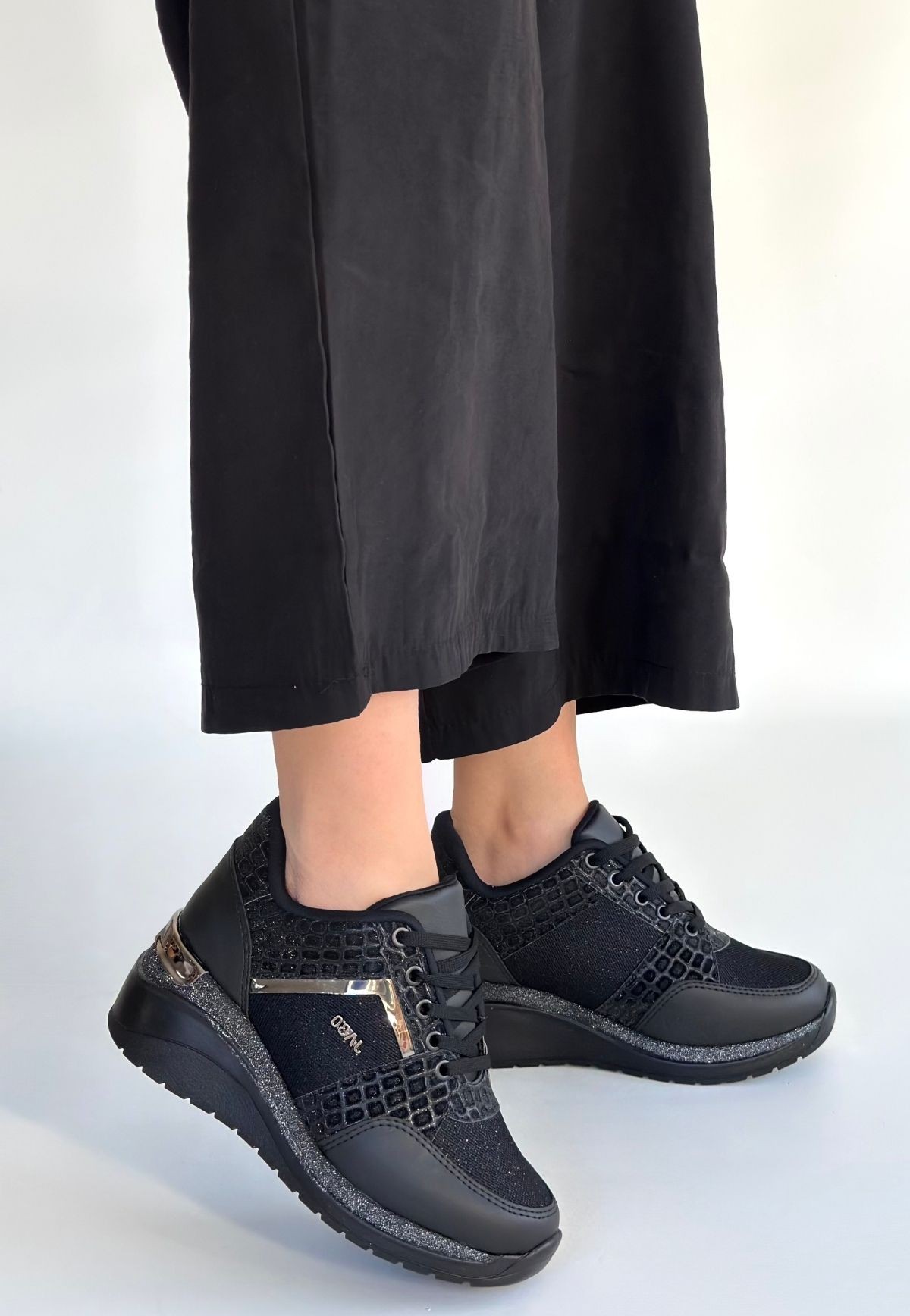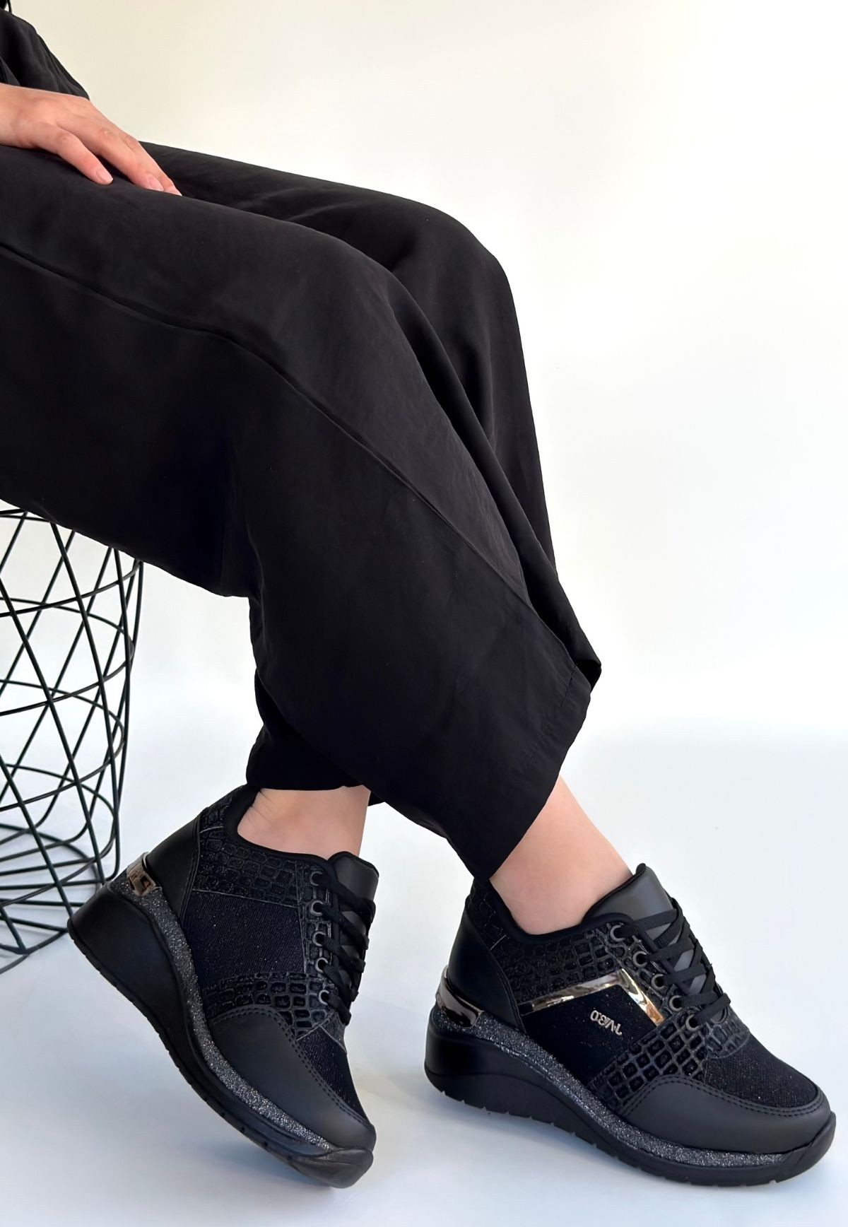 Geja Siyah Cilt Bağcıklı Spor Ayakkabı - 267283