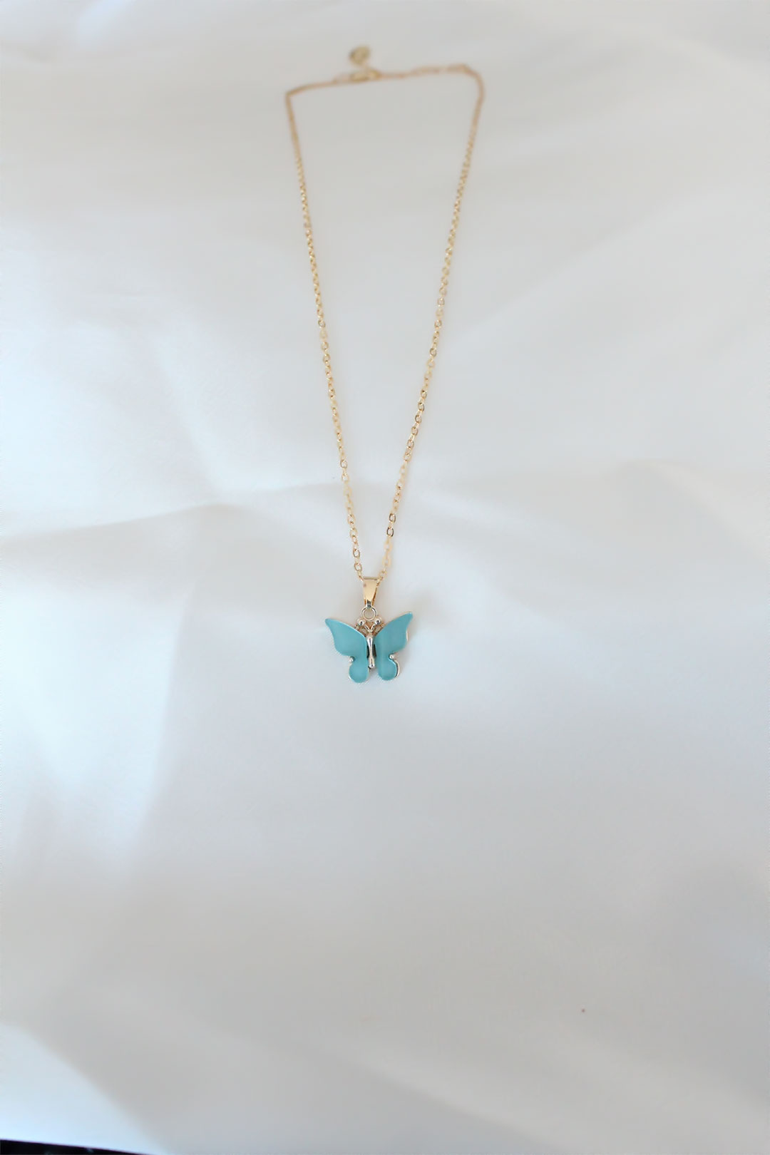 Gold Kaplama Turkuaz Renk Sedefli Kelebek Kolye - 241957