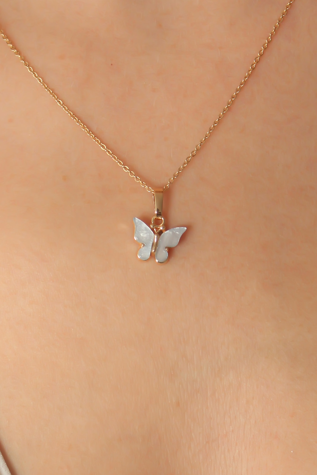 Gold Mavi Renk Kelebek Figür Kadın Kolye - 245031