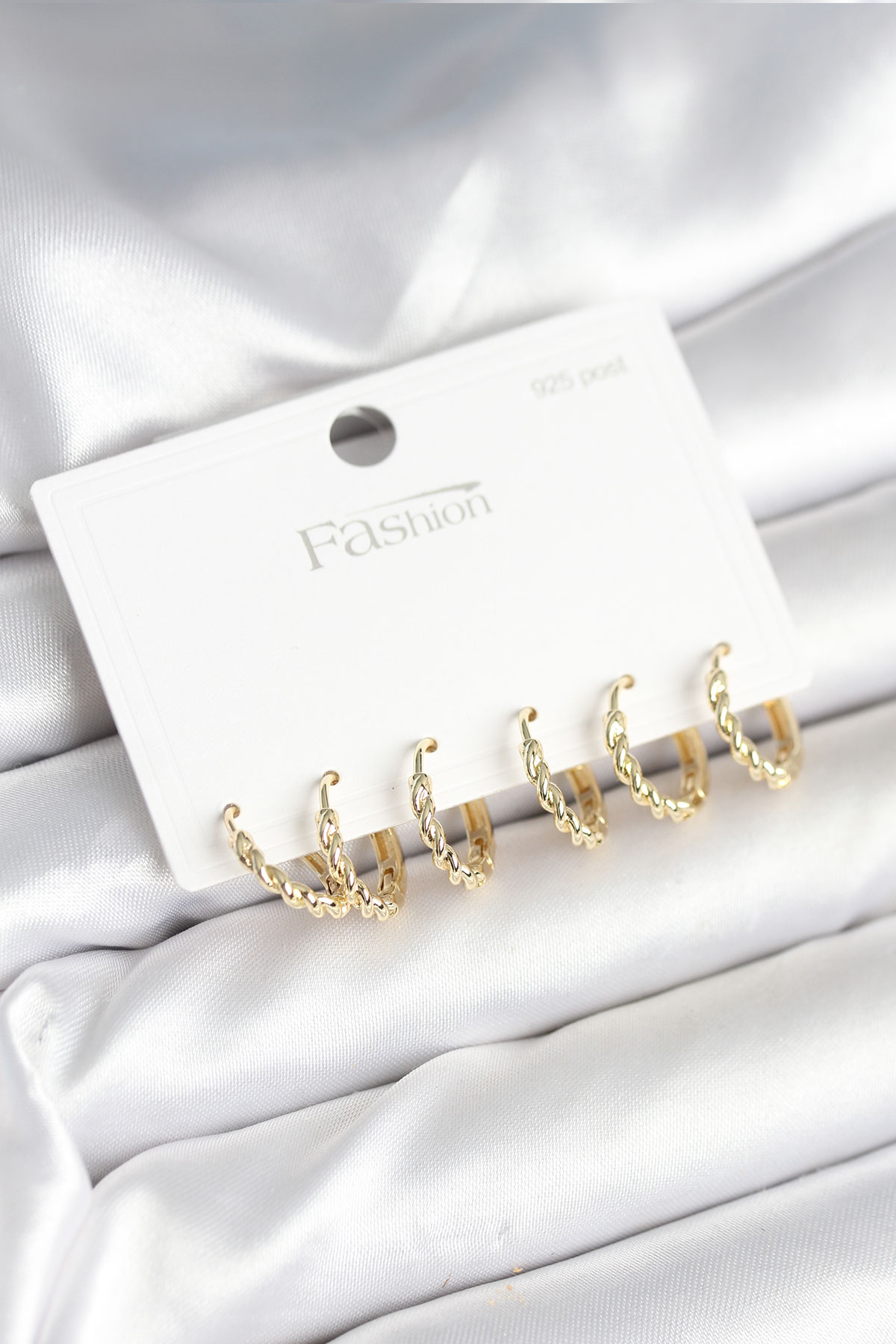 Gold Renk Burgu Halka Model 925 Ayar Gümüş Çivili Pirinç Küpe Seti - 265961