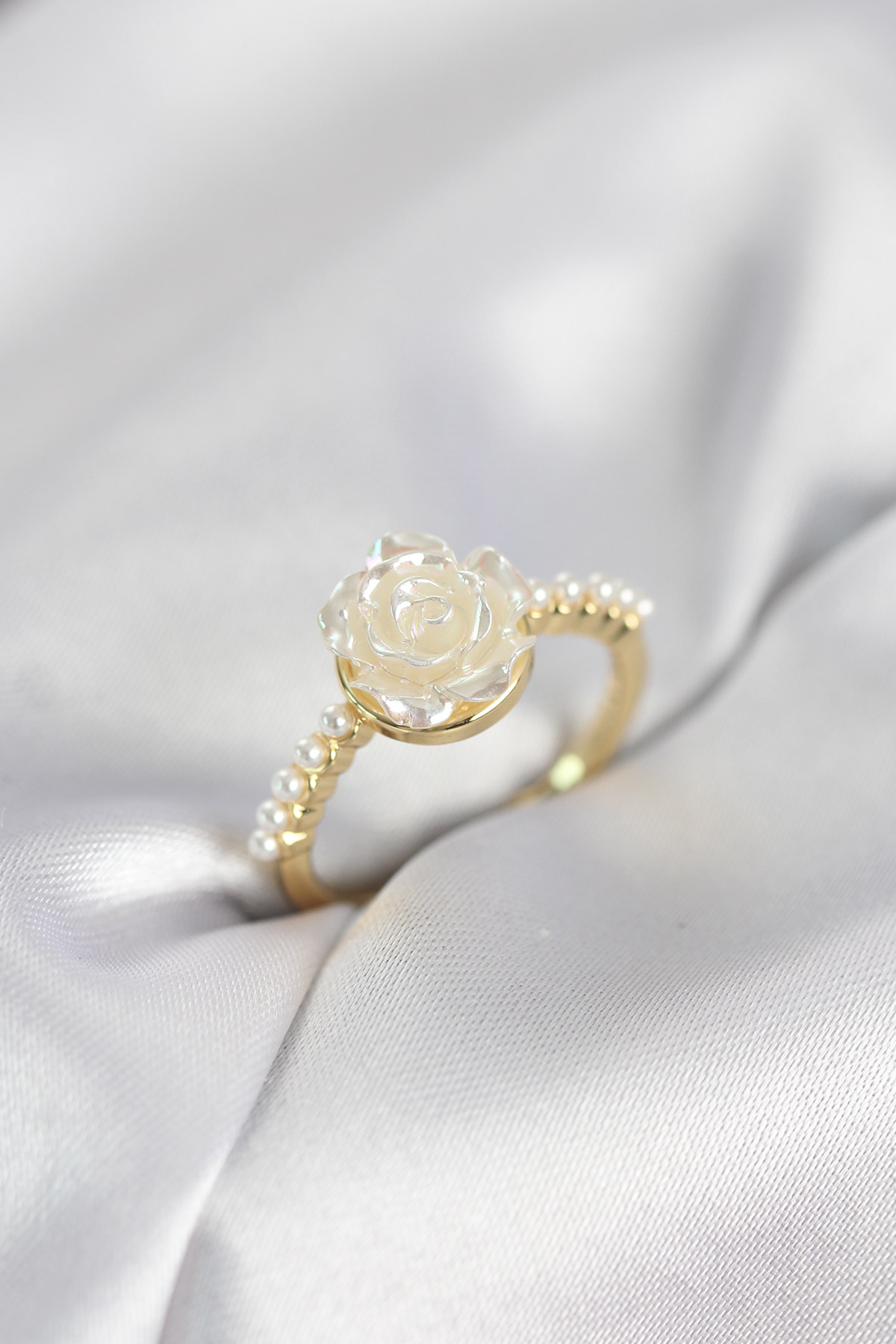 Gold Renk Gül Model İncili Kadın Yüzük - 267636