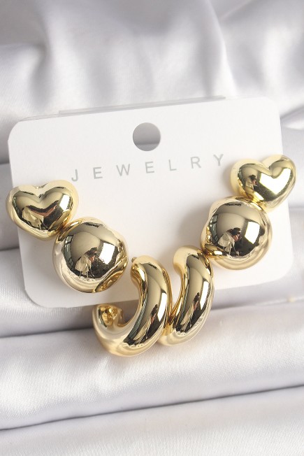 Gold Renk İşlemeli Daire Halka Model CCB Kadın Küpe Seti - 260085