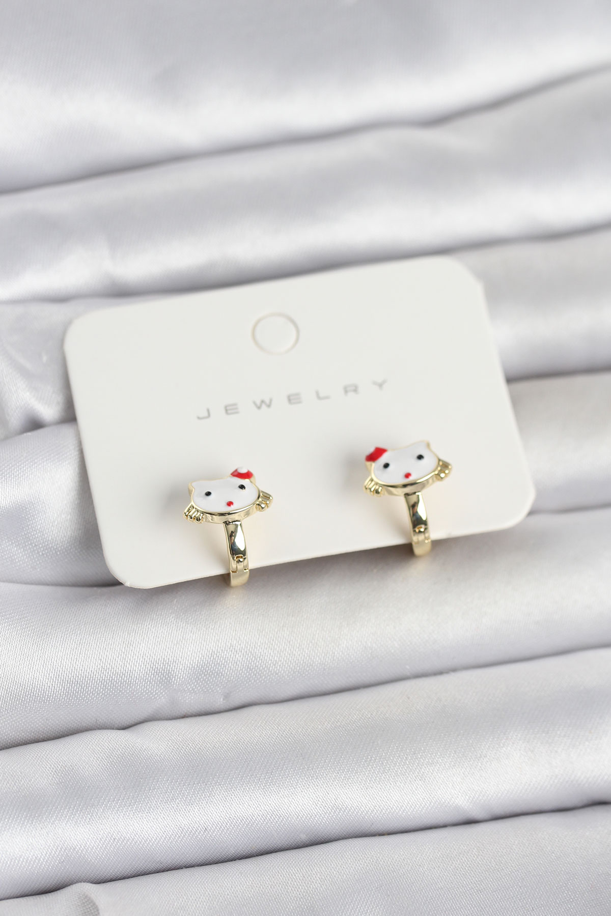 Gold Renk Kedi Model Mineli Çocuk Küpe - 268142