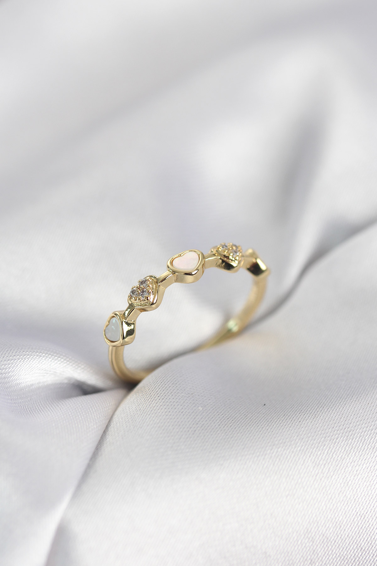 Gold Renk Minimal Kalp Model Zirkon Taşlı Pirinç Kadın Yüzük - 267604