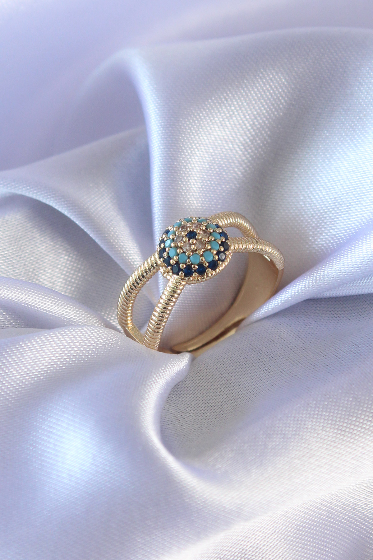 Gold Renk Nazar Boncuk Model Kadın Yüzük - 247518