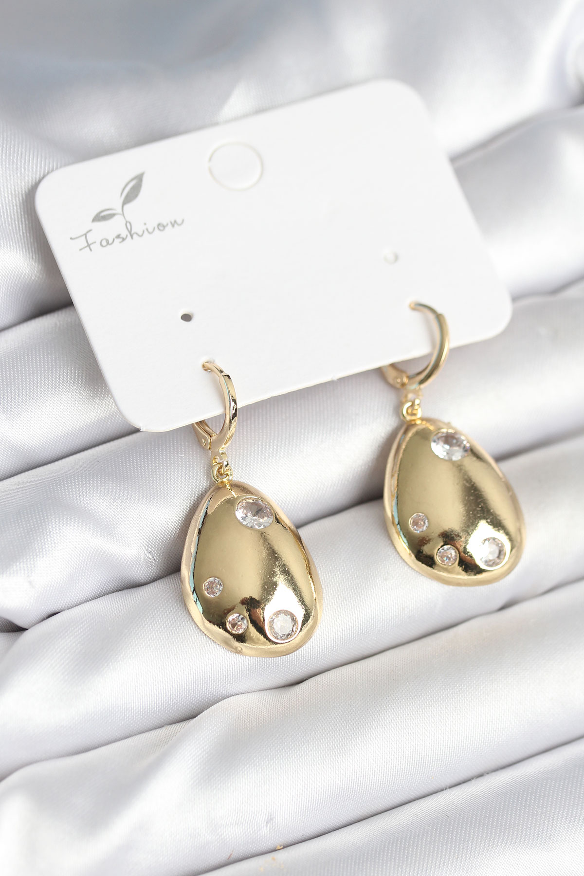 Gold Renk Pirinç Damla Model Kadın Küpe - 265974