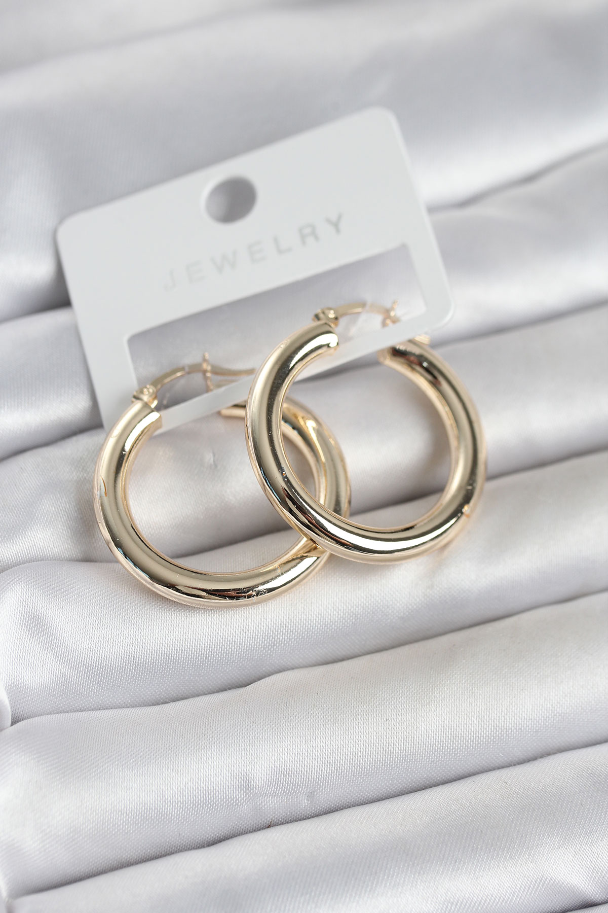 Gold Renk Pirinç Halka 30 mm Kadın Küpe - 268464