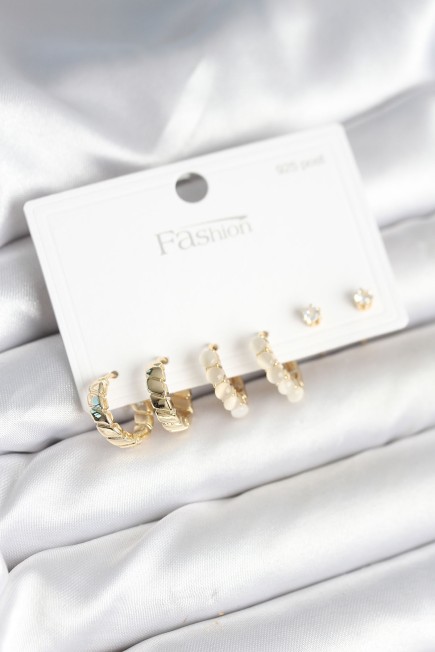 Gold Renk Pirinç Halka 925 Ayar Gümüş Çivili Kadın Küpe Seti - 265965