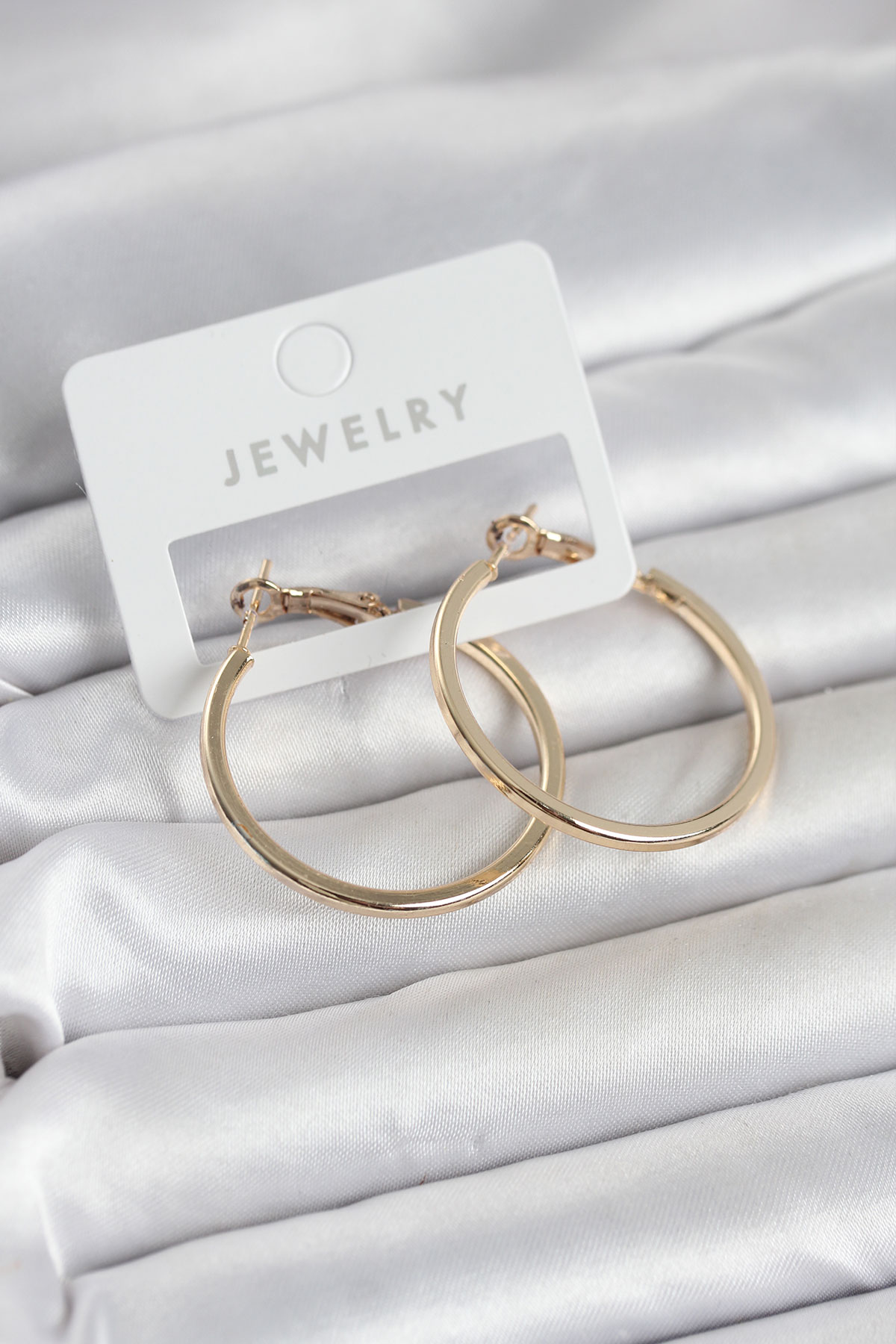 Gold Renk Pirinç Köşeli Kenar Halka 32 mm Kadın Küpe - 268470
