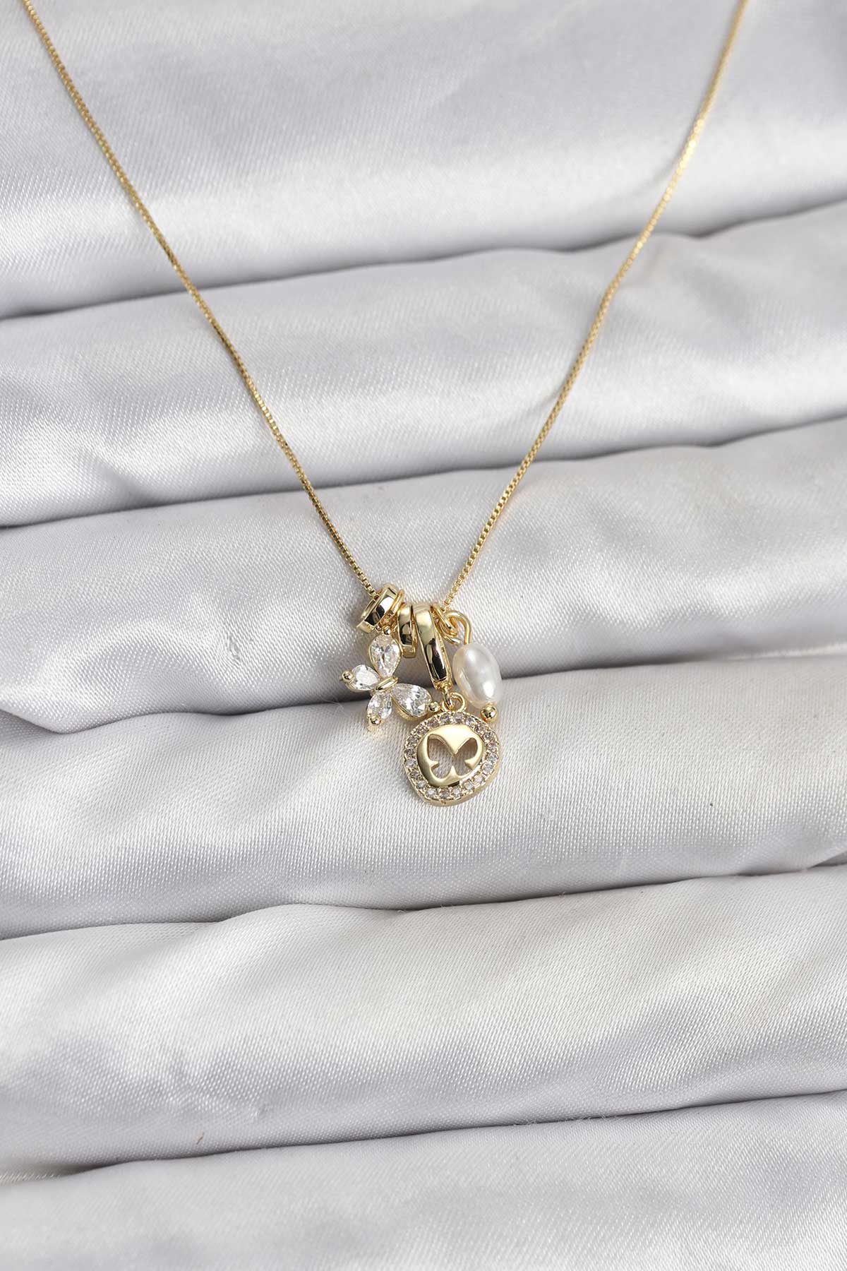 Gold Renk Pirinç Minimal Kelebek Charmlı Kadın Kolye - 266690