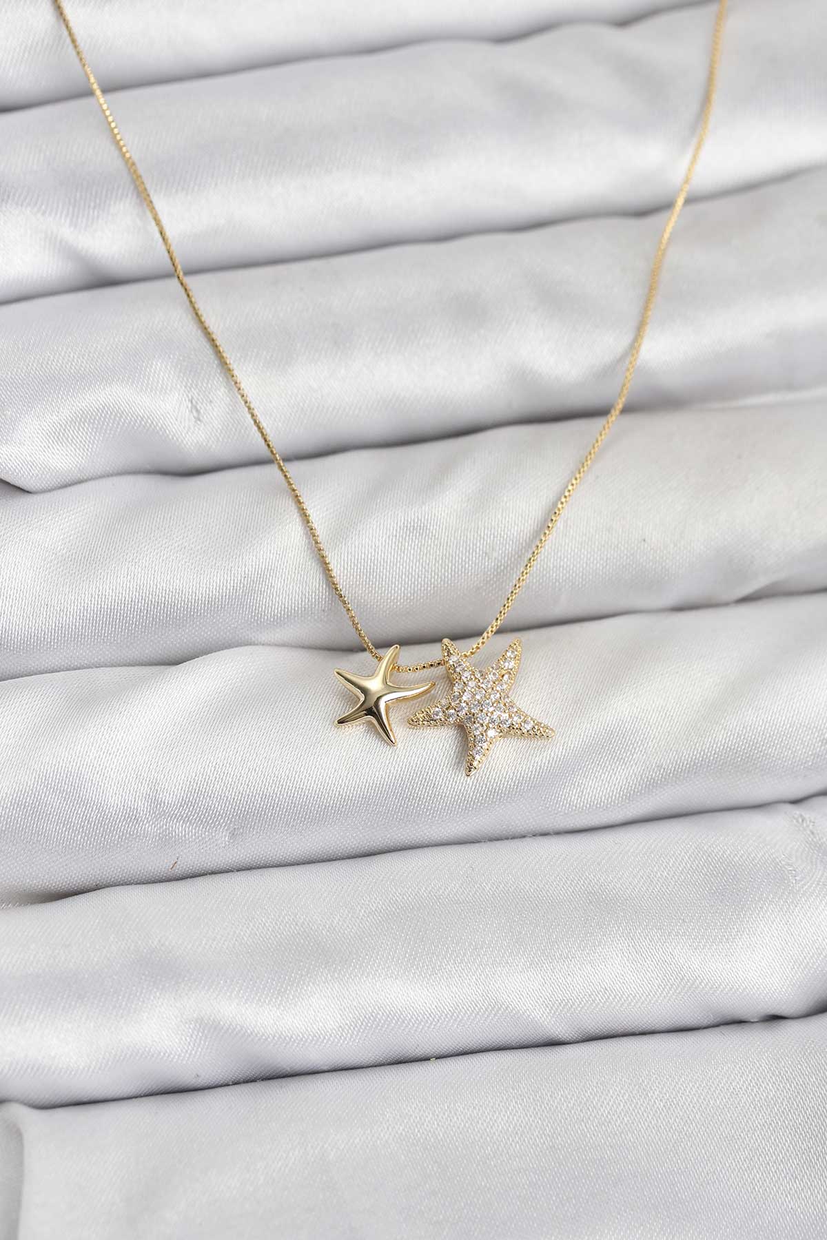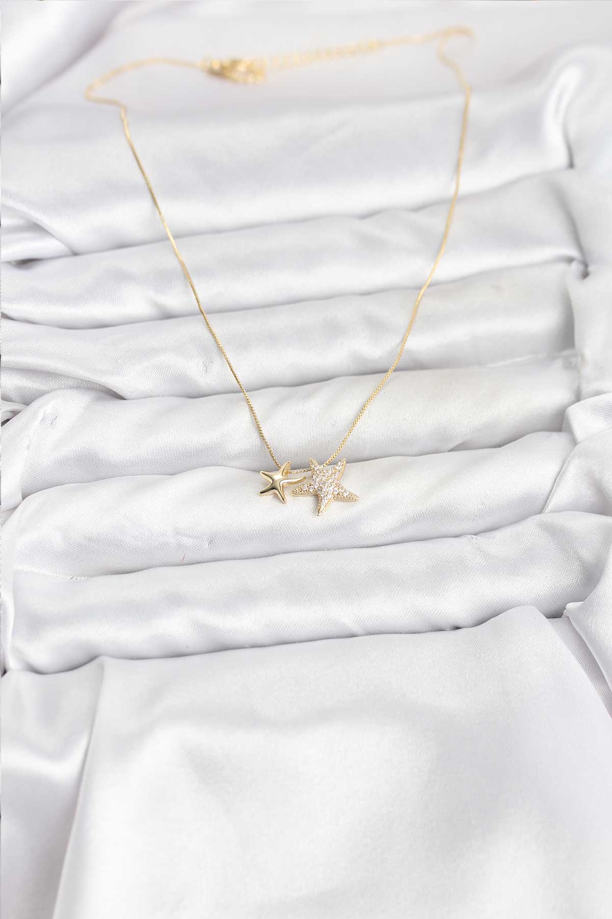 Gold Renk Pirinç Minimal Yıldız Model Kadın Kolye - 266689