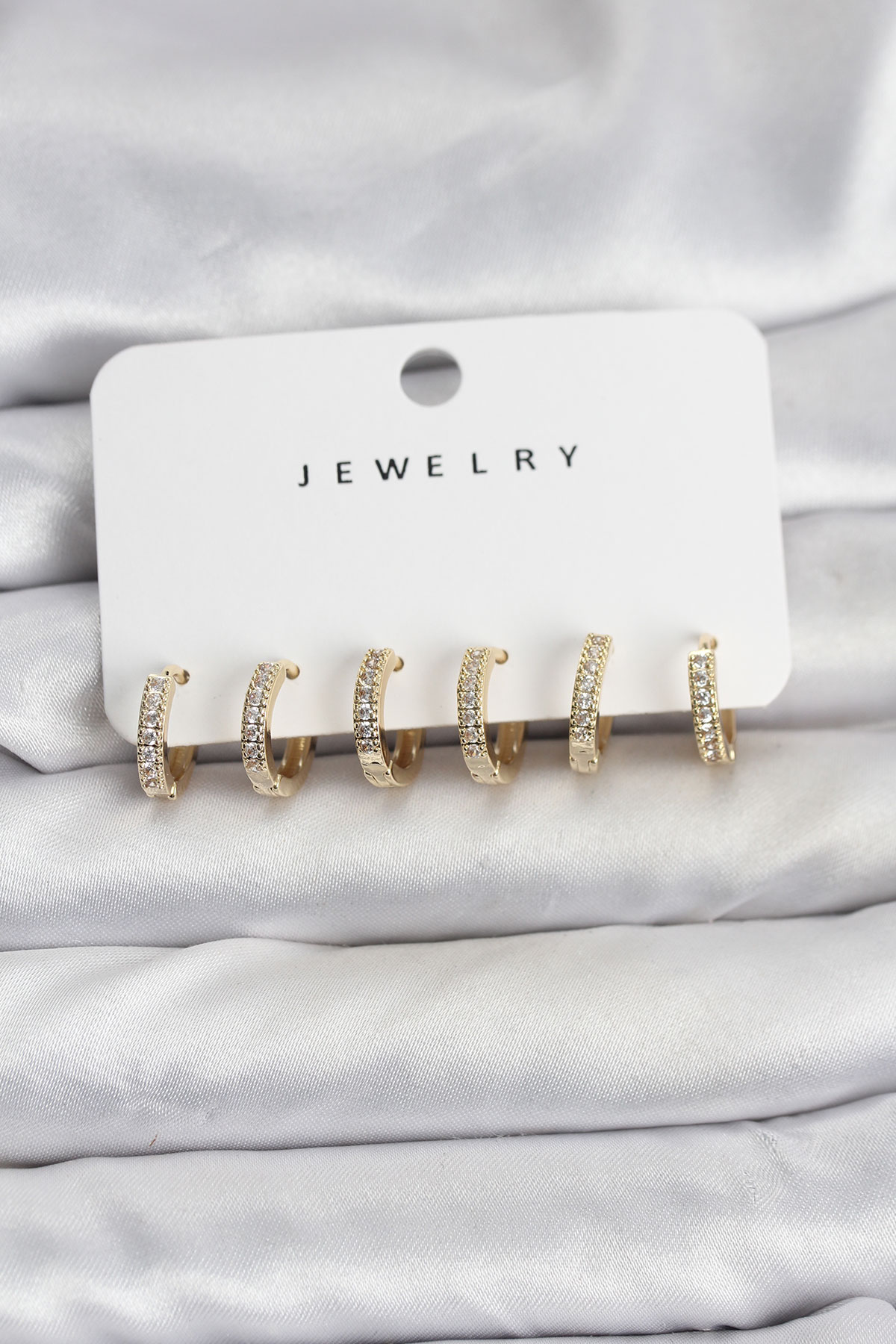 Gold Renk Pirinç Zirkon Taşlı Halka Kadın Küpe Seti - 266749