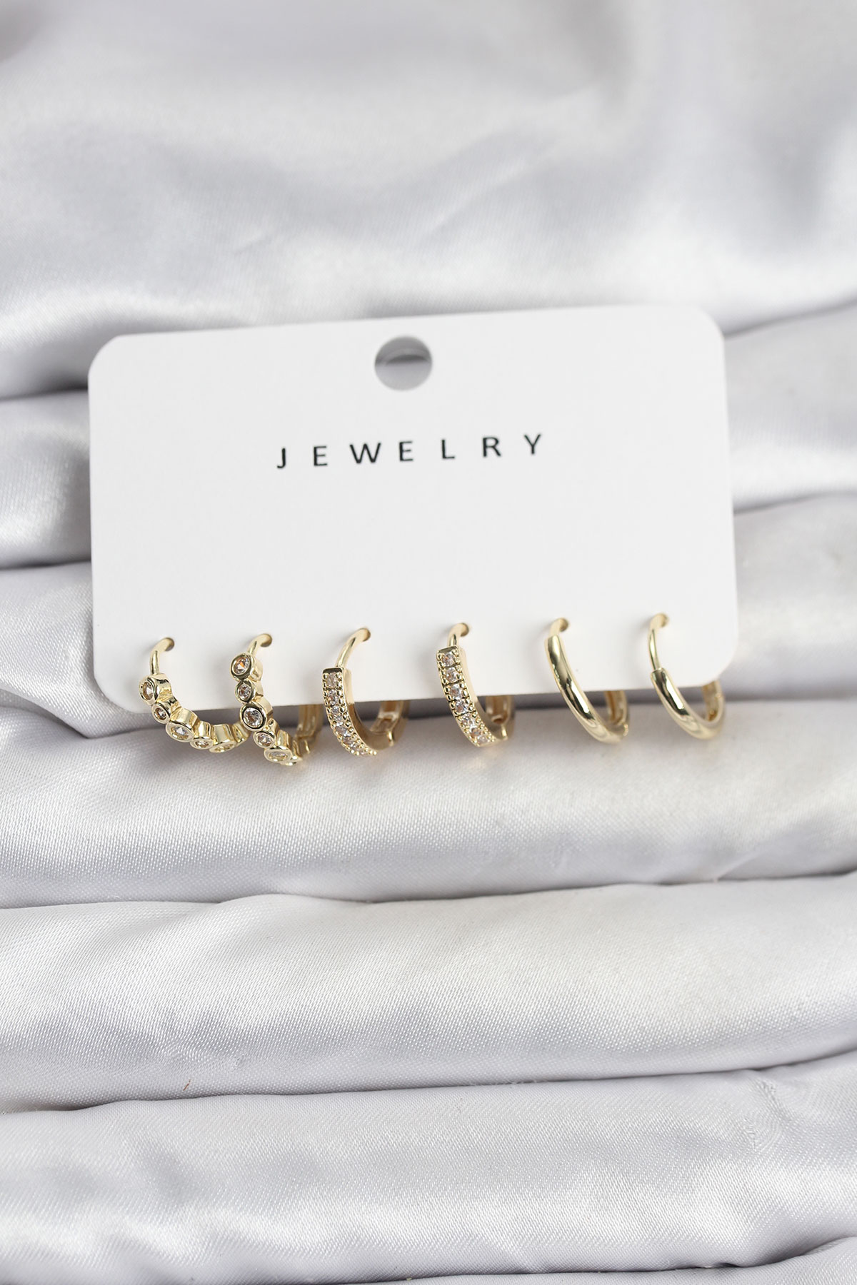 Gold Renk Pirinç Zirkon Taşlı Kadın Küpe Seti - 266739