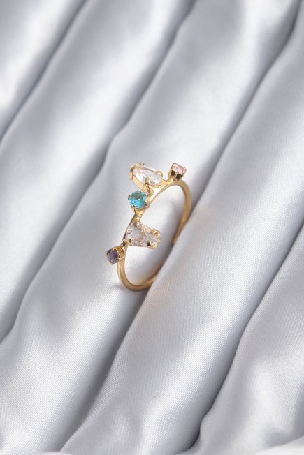 Gold Renk Renkli Zirkon Taşlı Kadın Yüzük - 251566