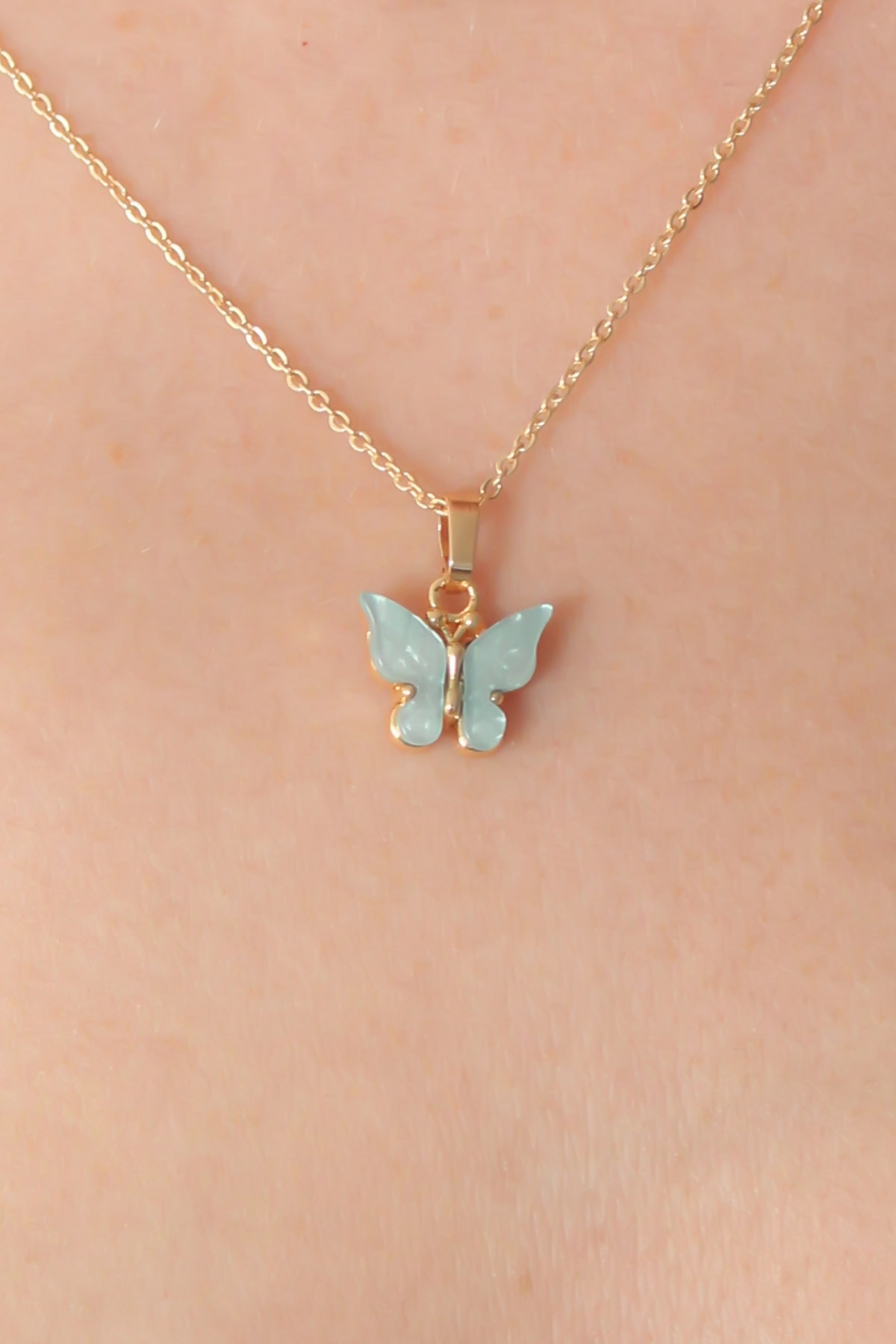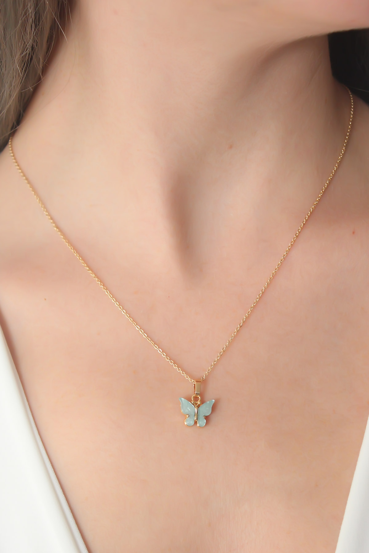 Gold Renk Su Yeşili Kelebek Figür Kadın Kolye - 245028
