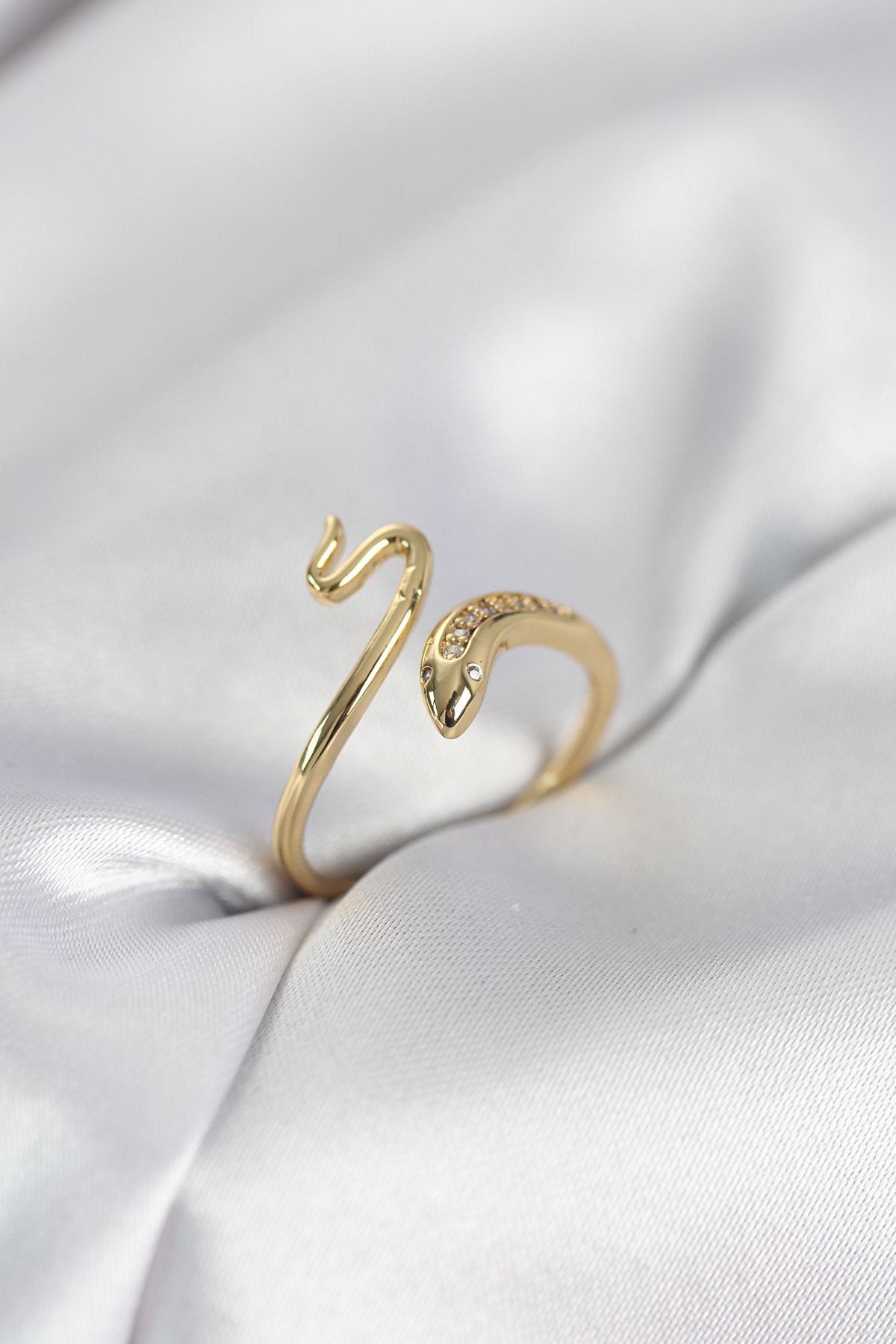 Gold Renk Yılan Model Zirkon Taşlı Kadın Yüzük - 267675