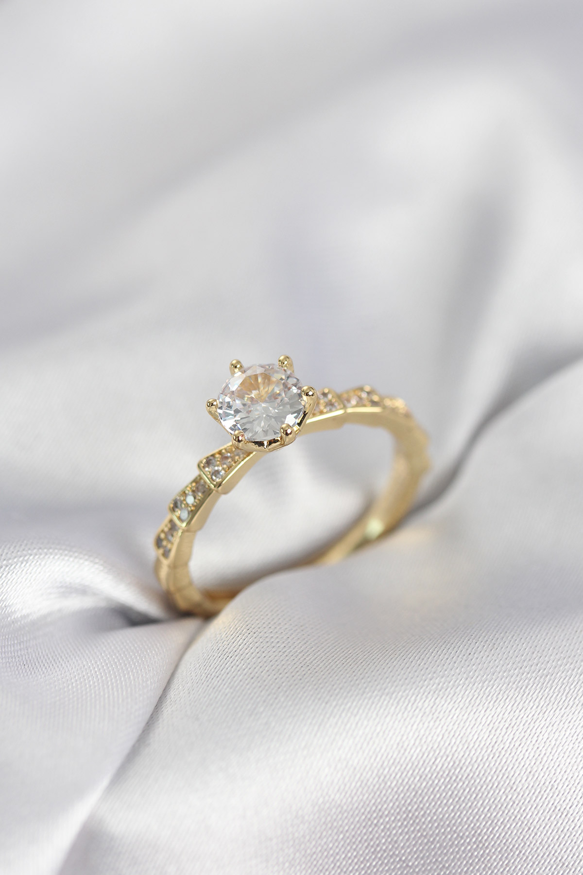 Gold Renk Zirkon Taşlı Tek Taş Model Kadın Yüzük - 267568
