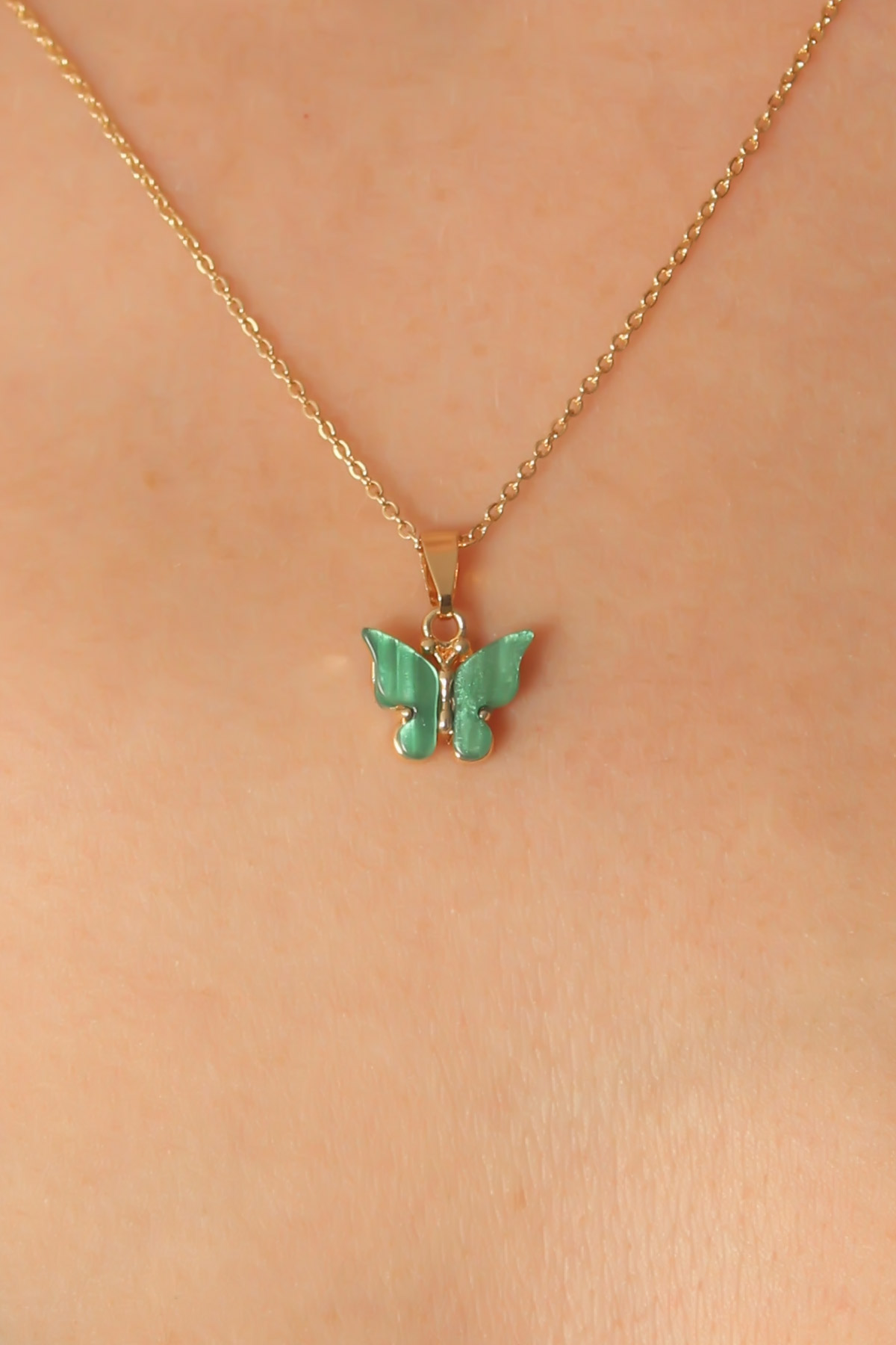 Gold Yeşil Renk Kelebek Figür Kadın Kolye - 245030