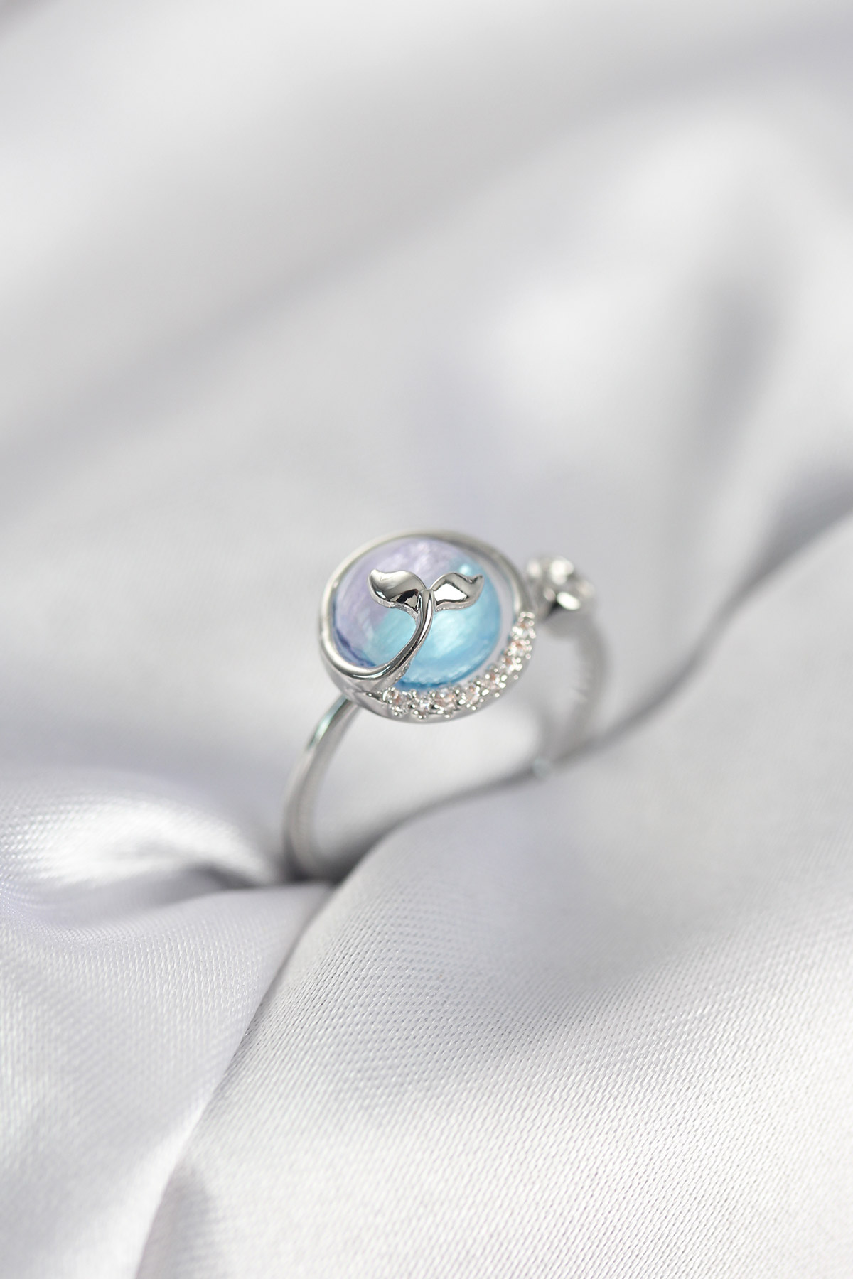Gümüş Renk Balık Kuyruğu Okyanus Model Kadın Yüzük - 267553