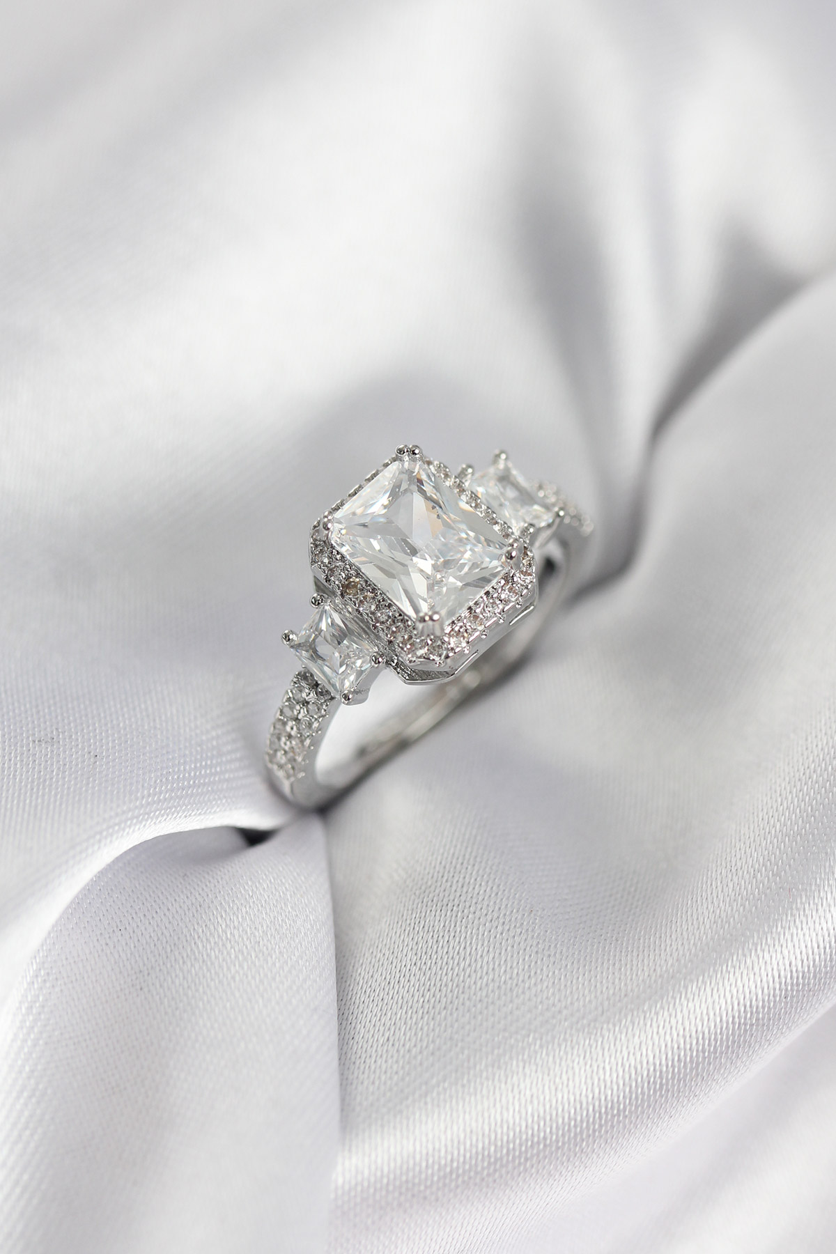 Gümüş Renk Kare Baget Zirkon Taşlı Tek Taş Model Kadın Yüzük - 267479