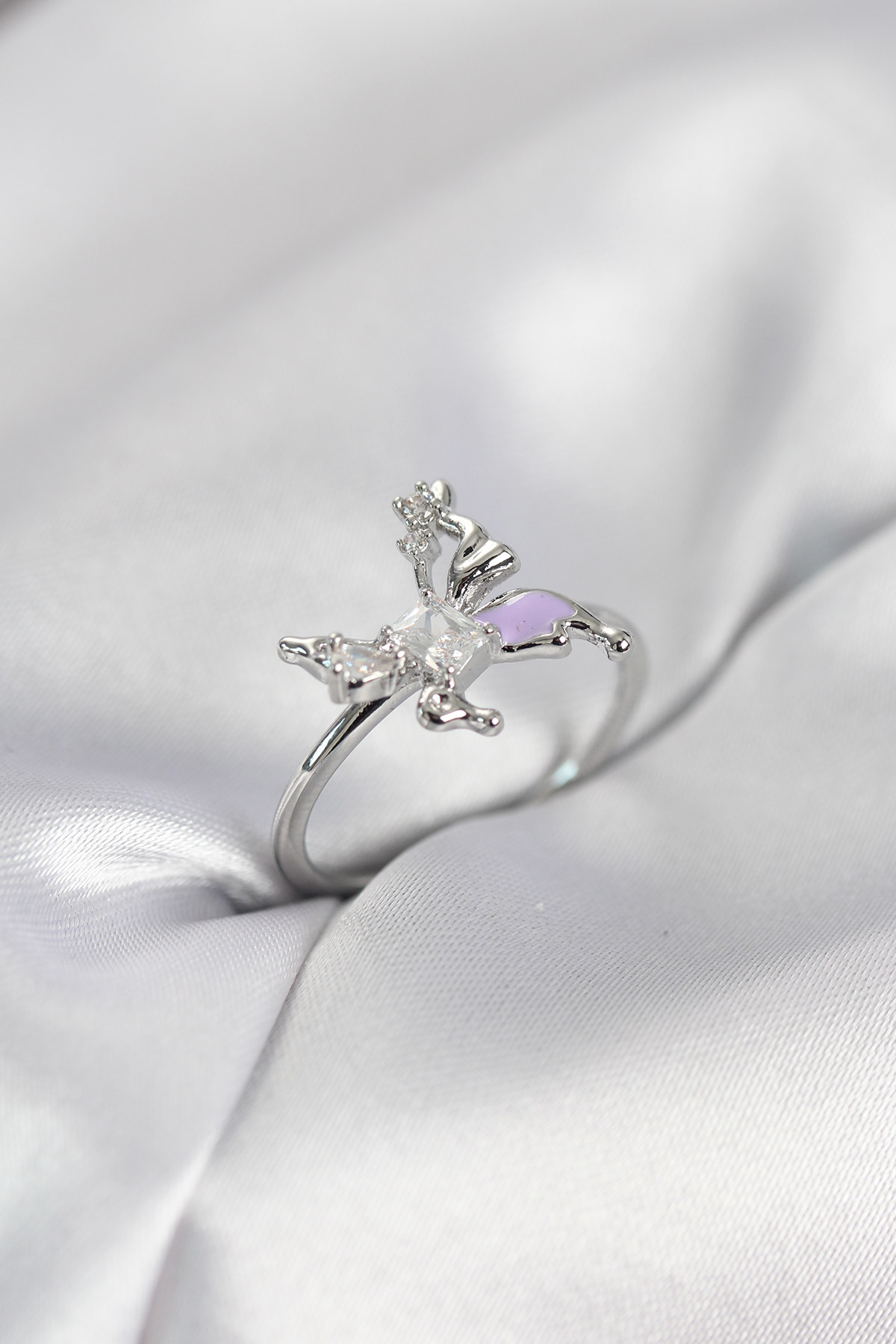 Gümüş Renk Kelebek Model Zirkon Taşlı Kadın Yüzük - 267680