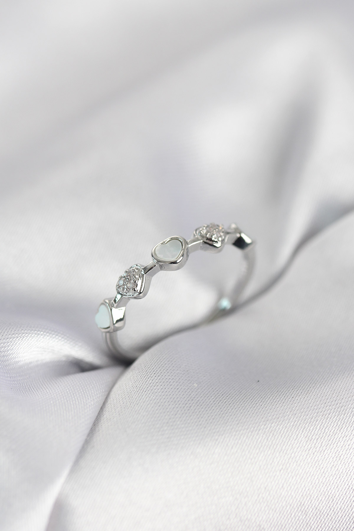 Gümüş Renk Minimal Kalp Model Zirkon Taşlı Pirinç Kadın Yüzük - 267603