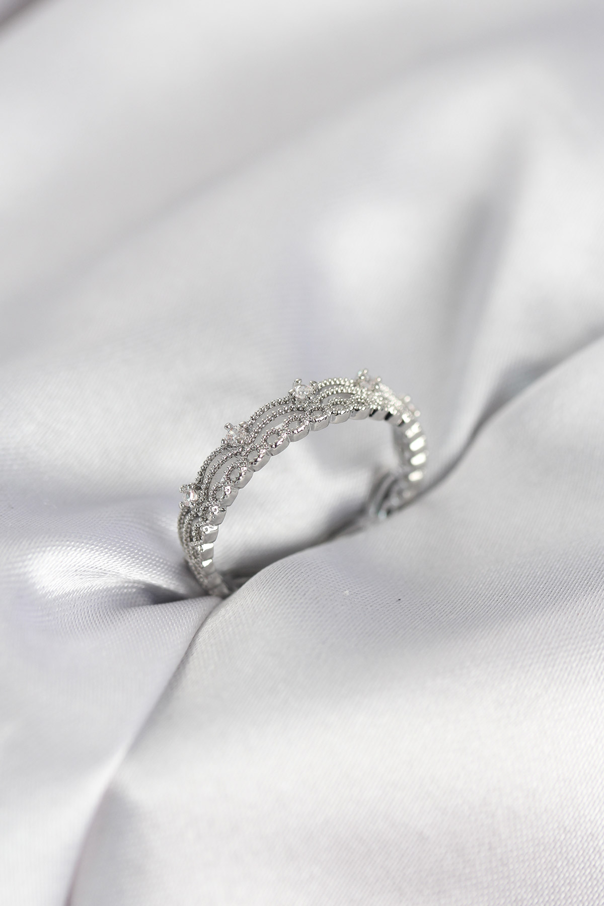 Gümüş Renk Motif Desenli Zirkon Taşlı Kadın Yüzük - 267686