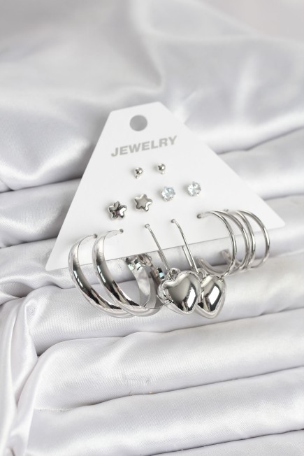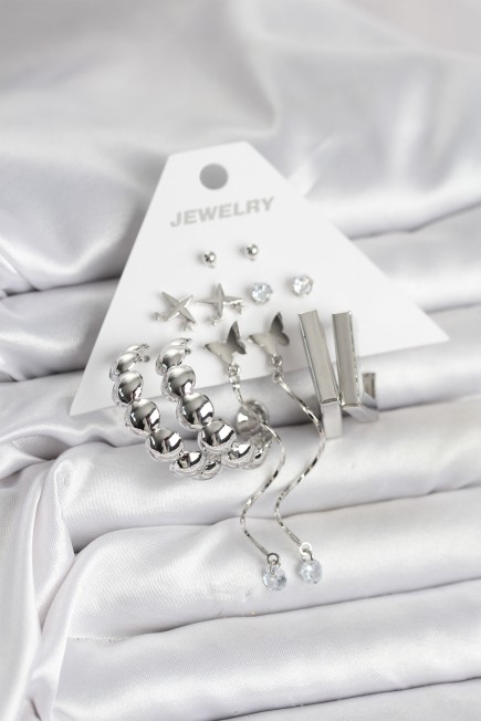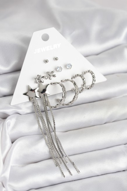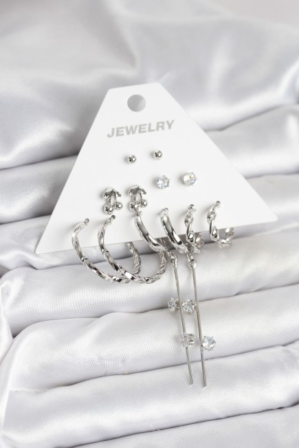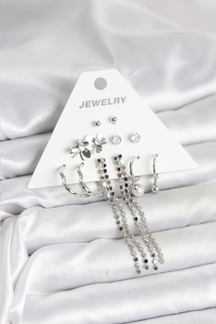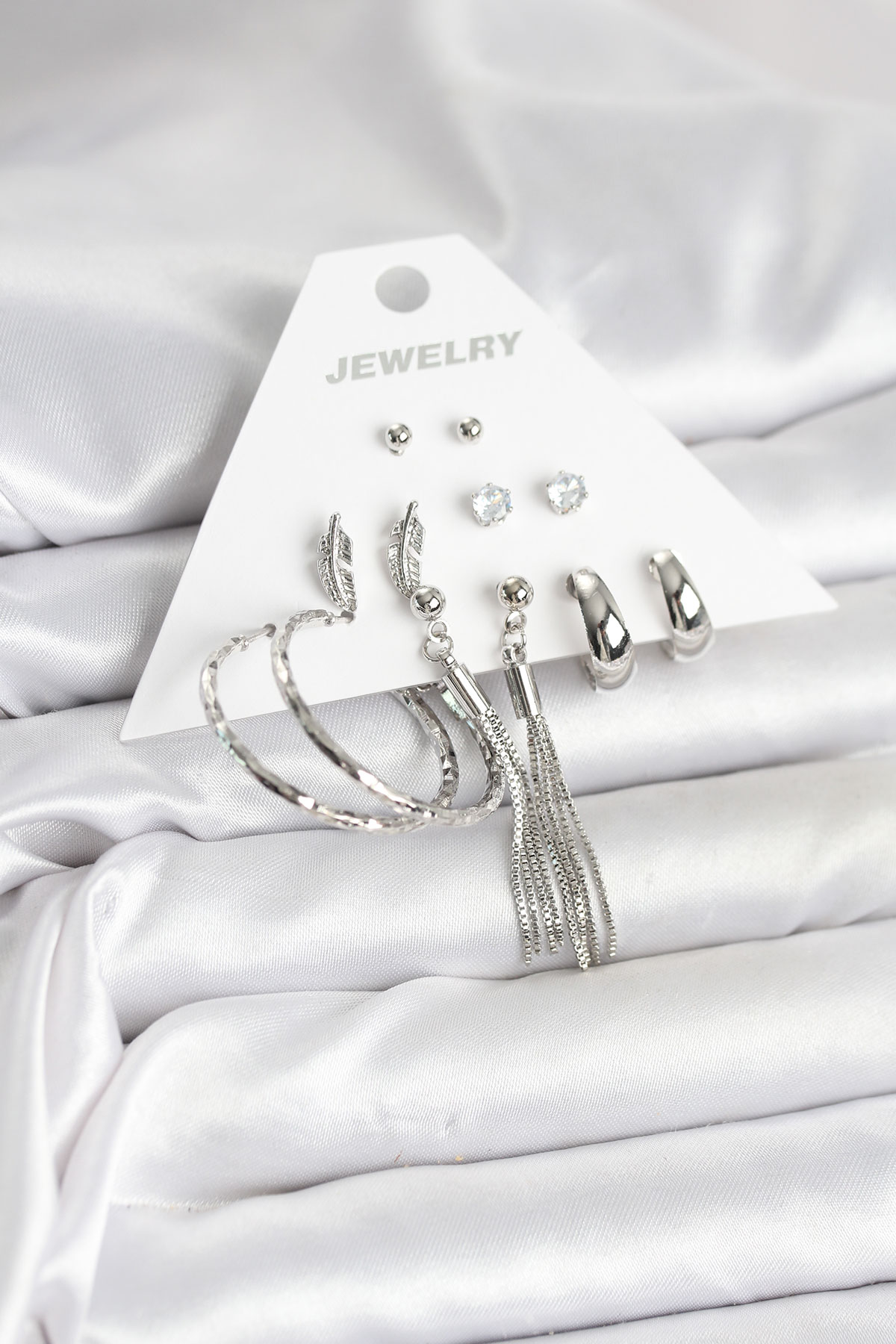 Gümüş Renk Pirinç 6 Çiftli Kadın Küpe Seti - 266122