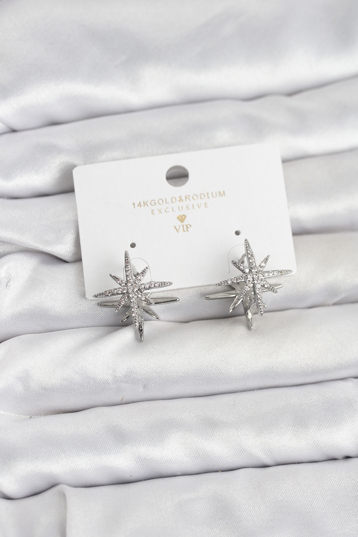 Gümüş Renk Pirinç Çift Taraflı Kutup Yıldızı Kadın Küpe - 266773