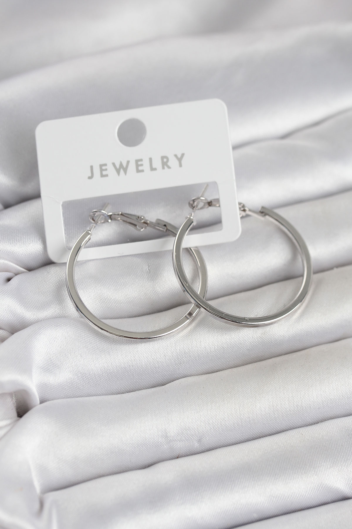 Gümüş Renk Pirinç Köşeli Kenar Halka 32 mm Kadın Küpe - 268471